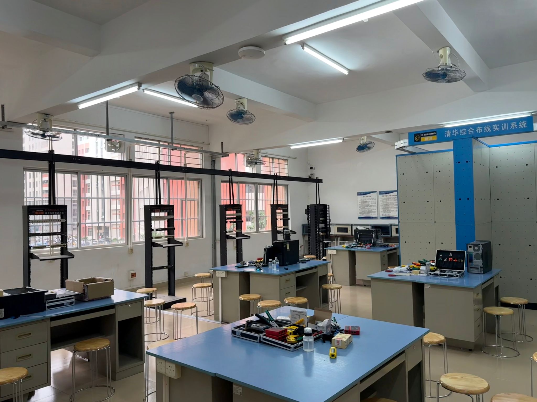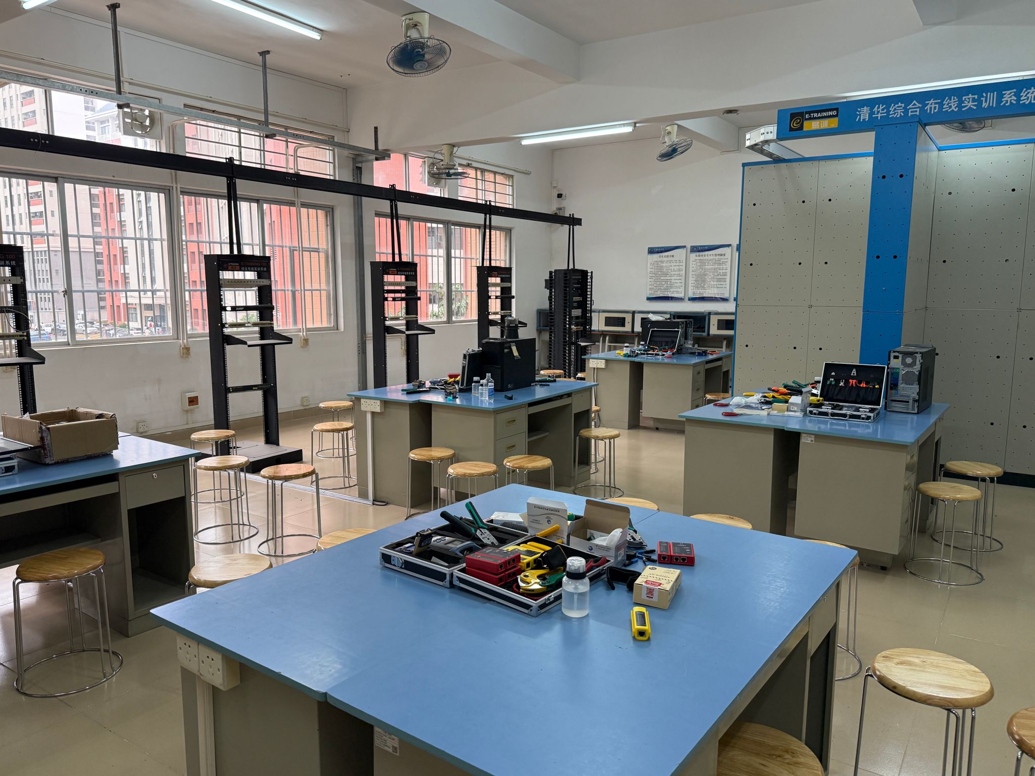 综合布线实验室位于42317室,主要承担计算机相关专业《综合布线》课程的实验教学任务,根据专业需求可开出基础实验、综合性和设计性实验共7个实验项目。