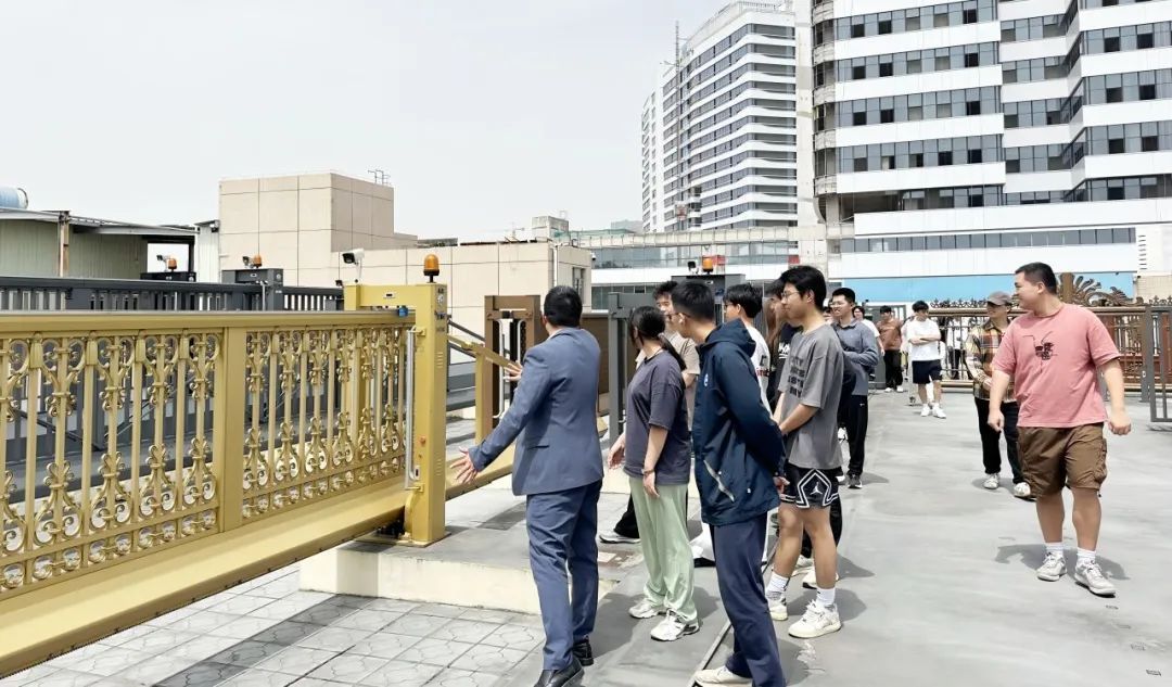 在测试场地,同学们亲眼见证了智能闸门如何精准识别行人车辆,并自动调整开合策略。更让同学们惊叹的是,当工作人员模拟"尾随"等异常情况时,系统能立即做出安全响应。通过工程师的详细讲解,学生们了解到这些看似简单的门禁系统,背后其实融合了机器视觉、物联网等多项技术。