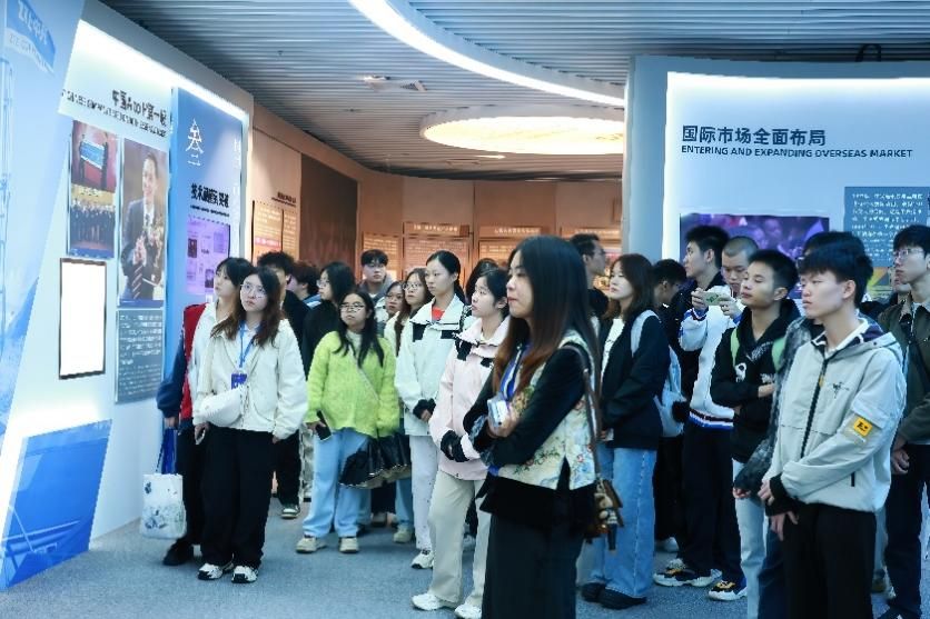 参观环节,师生们在讲解员的带领下共同参观了中兴展厅两大核心板块——博物馆历史展区与前沿技术展厅。