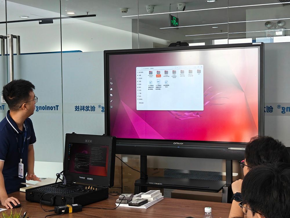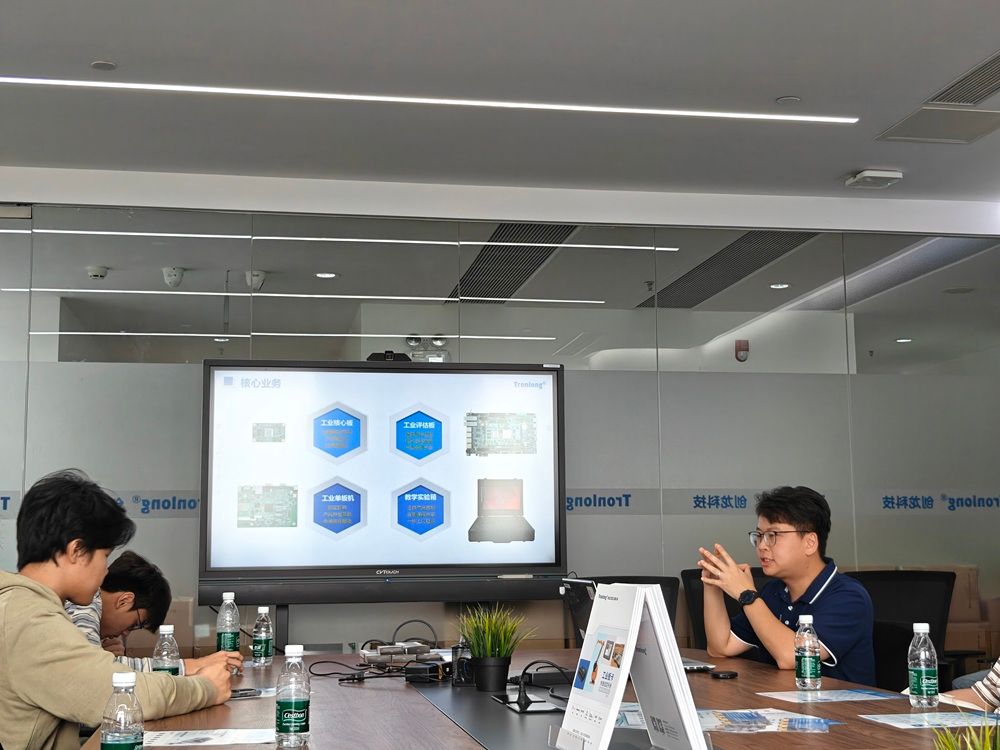 在会议室,公司负责人通过生动的讲解,回顾了企业的创建历程,给同学们传授了创业的宝贵经验。同时,负责人详细介绍了公司的核心业务范围,让师生们对企业的发展定位和行业布局有了全面了解。活动现场,工作人员进行了创龙教仪的演示。通过实物操作与现场讲解相结合的方式,展示了教仪在嵌入式技术教学中的应用优势。演示过程中,同学们积极提问,工作人员耐心解答,现场互动氛围热烈。