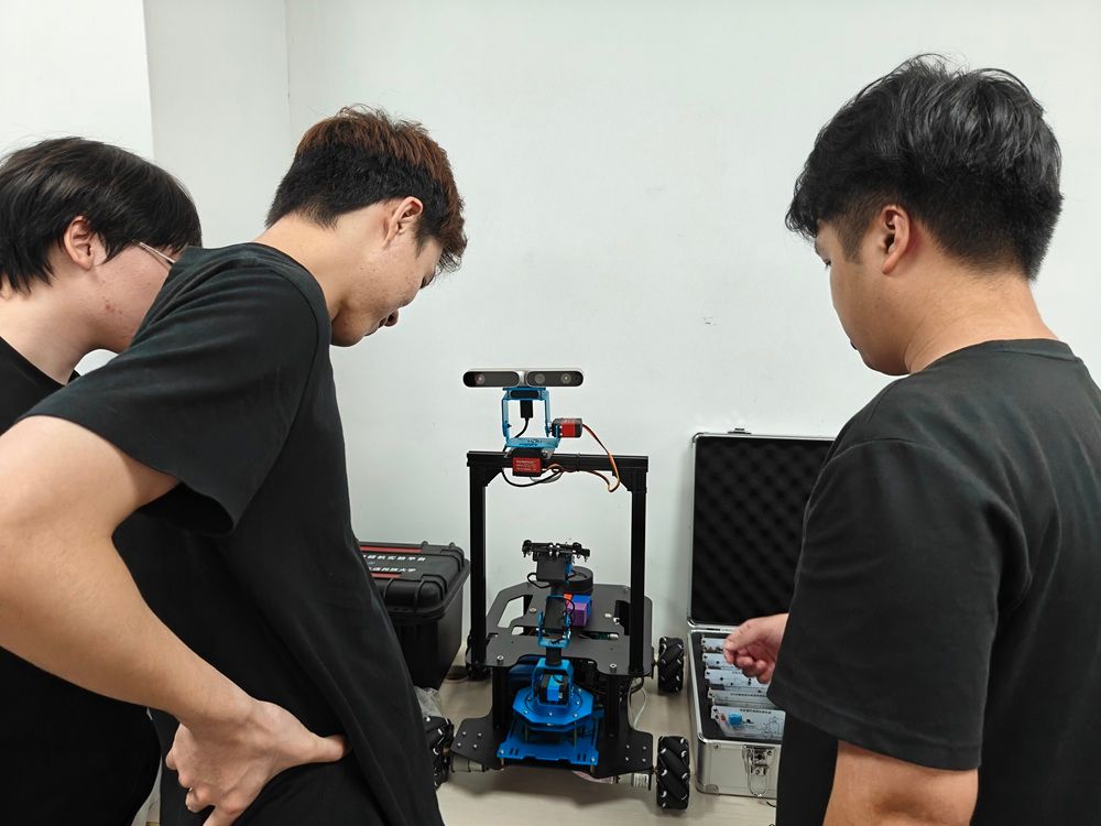 随后,在工作人员的带领下,同学们参观了会议室里的产品。工作人员逐一讲解了产品的设计原理、核心功能及在教学中的应用价值。通过近距离观察与详细询问,同学们对教育科技产品的研发逻辑和应用场景有了更深刻的理解。