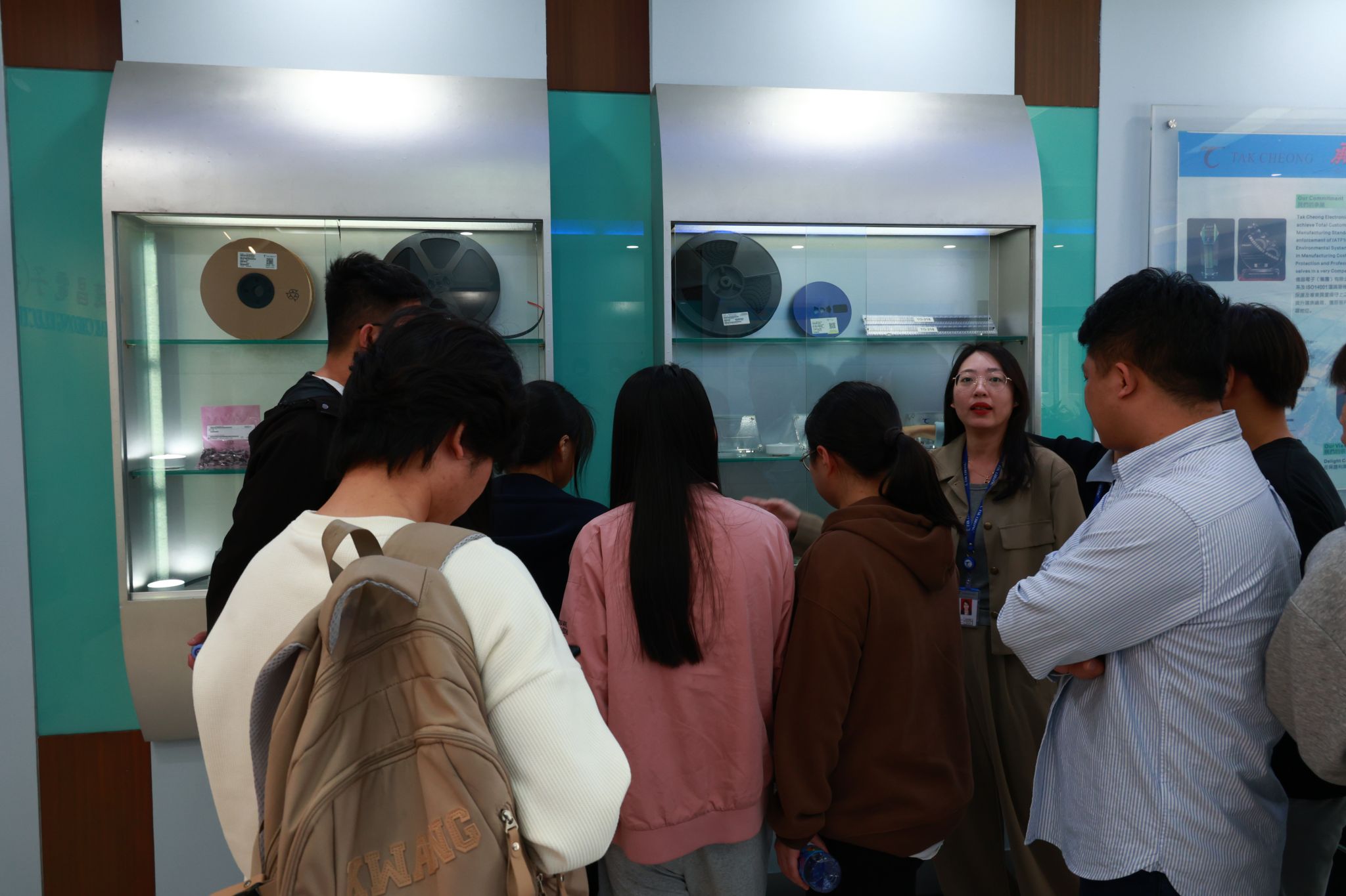 师生首先观看了企业介绍视频,视频系统呈现了德昌电子从传统电子元件制造商向“创新型元件解决方案提供商”的转型历程。在新型电容、高频电感、微型连接器等领域的技术积淀与专利布局,也让同学们对 “电子元件产业生态” 有了全新认知。