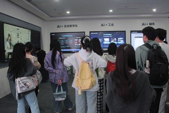 11月16日,首站来到科大讯飞股份有限公司。在企业工作人员的带领下,师生们参观了科技感满满的展厅、园区与办公区域,全方位了解企业发展历程。从服务全国政协、人大的智能会议系统,到支持85种语言的双屏翻译机,从9段水准的阿尔法蛋围棋机器人,到赋能千行百业的讯飞星火大模型及科研助手、智能办公本等系列产品,让同学们近距离感受AI技术的硬核实力与应用魅力。