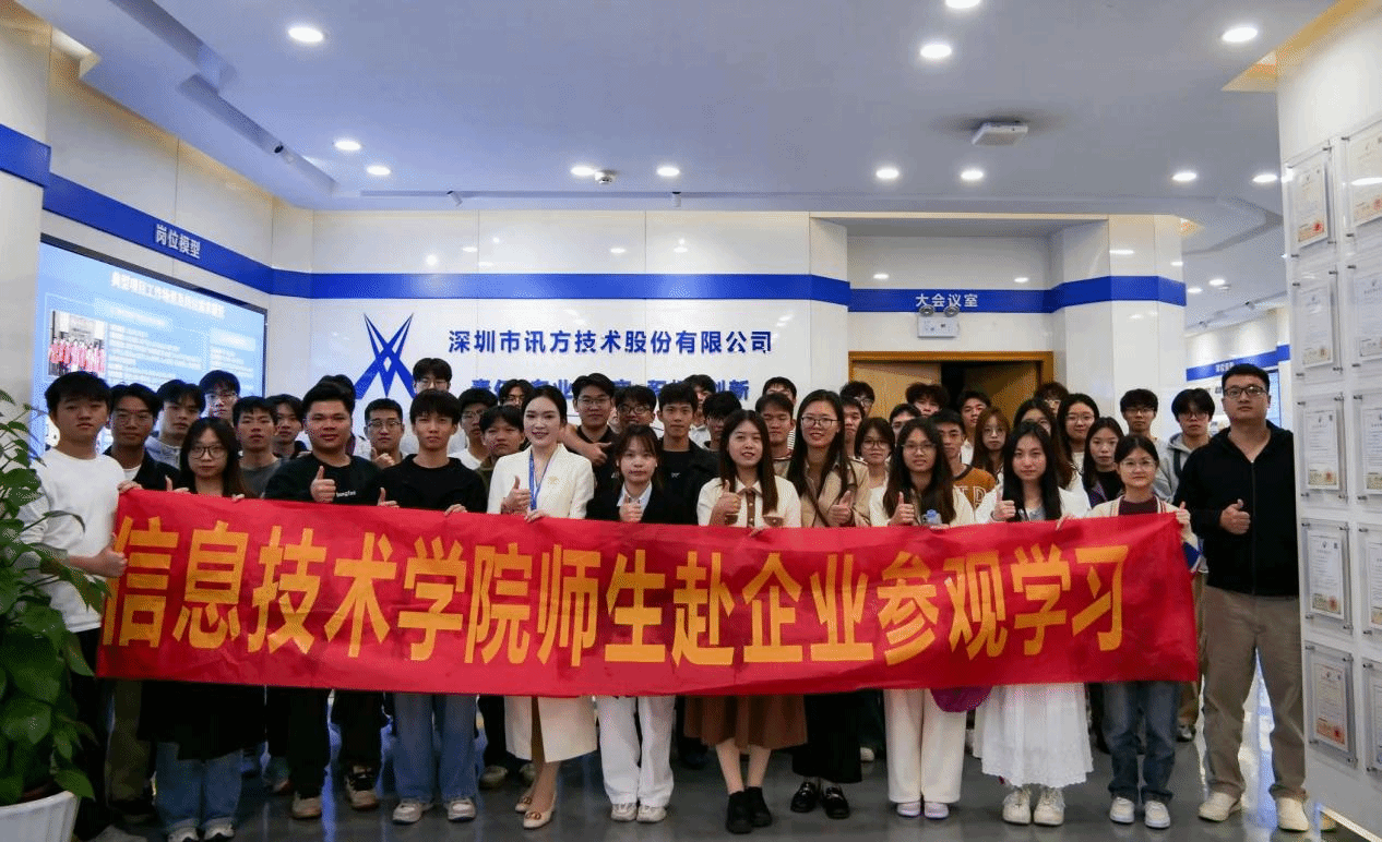 日组织师生前往深圳市讯方技术公司与优必选公司展开见习之旅。本次活动在辅导员刘贤俏、傅居睿、曾冬艳的带领下,引领学生深入科技企业的核心区域,深度挖掘专业知识与职业实践相互交融的有效路径,力求为学生的未来发展奠定坚实基础并拓展广阔视野。