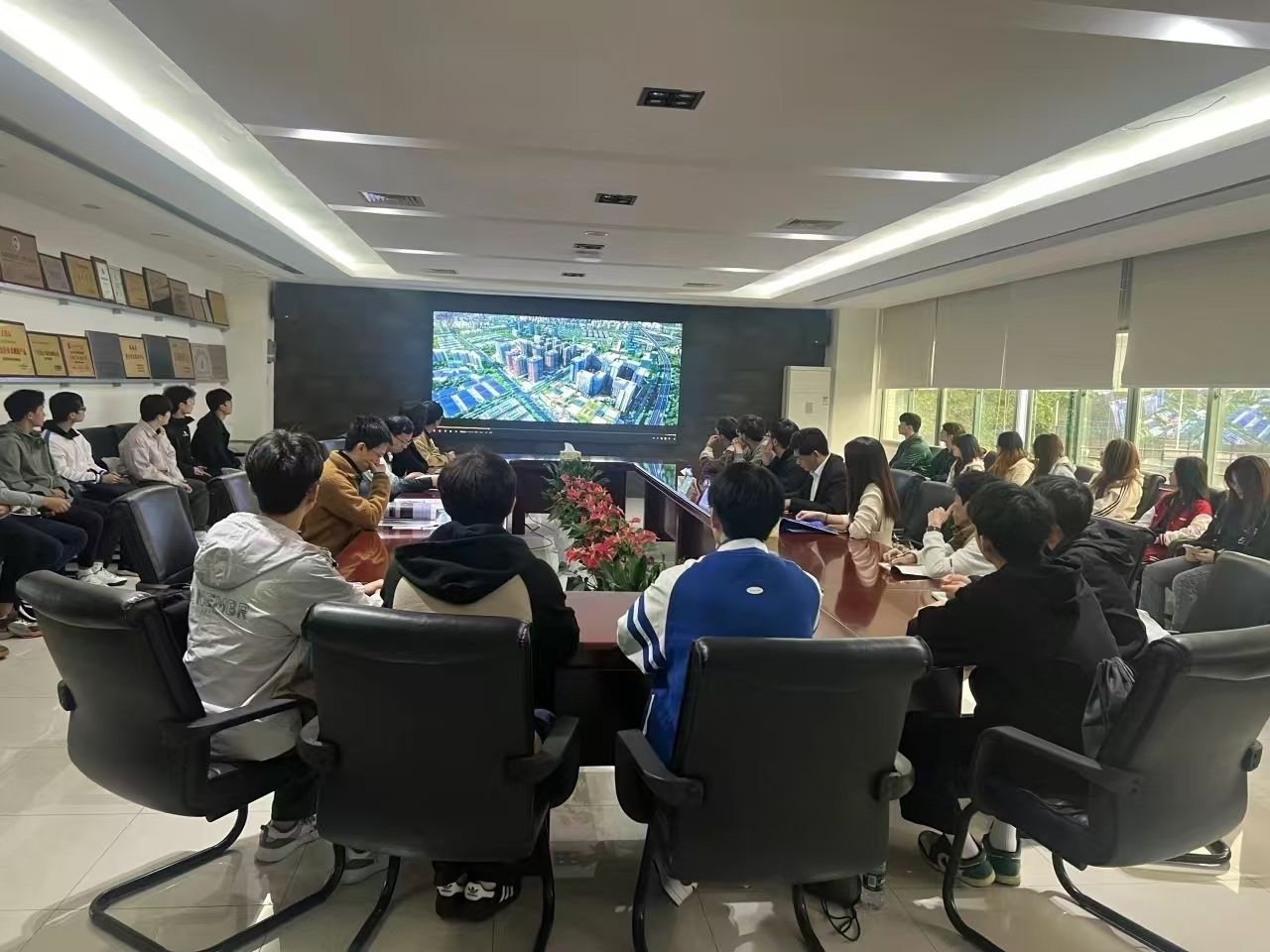 首先,参观环节,珠海同望科技股份有限公司经理陈晓贤带领大家细致地了解了公司在园区内的大致分布情况、办公场所等,使同学们全方位地展示了珠海同望科技股份有限公司的发展历程、核心业务以及辉煌成就。