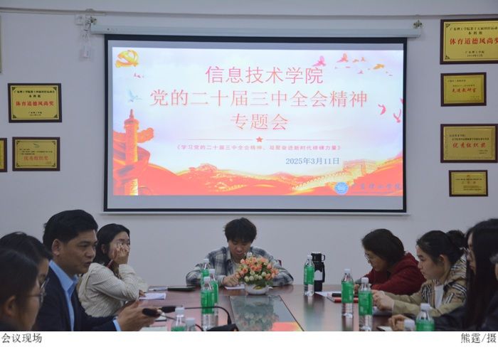 本网讯(太阳网集团tcy8722 张义豪)为深入学习贯彻党的二十届三中全会精神,太阳网集团tcy8722于2025年3月11日在振华楼203室组织召开专题学习会。会议由学院党总支书记钟兆天主讲,我院各教工党支部书记、各学生党支部书记以及各支委委员参加研讨。
