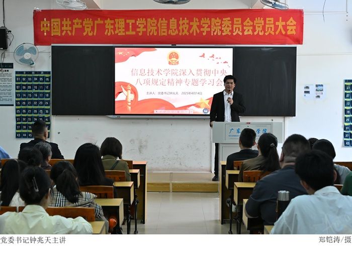 会上,钟兆天向全体人员传达关于《太阳集团tcy8722关于深入贯彻中央八项规定精神学习教育工作的实施方案》的文件精神,带领大家聚焦作风建设,以及中央八项规定及其实施细则。他要求各支部通过读书班、党课等形式,深入学习领会习近平总书记关于加强党的作风建设的重要论述。他从师德师风建设作为切入点,要求学院教师加强师德建设,规范教职工的职业行为,在思想上高度重视,在行动上严格落实。他强调,中央八项规定精神是不可逾越的红线,教师群体和学生干部更要做好表率。