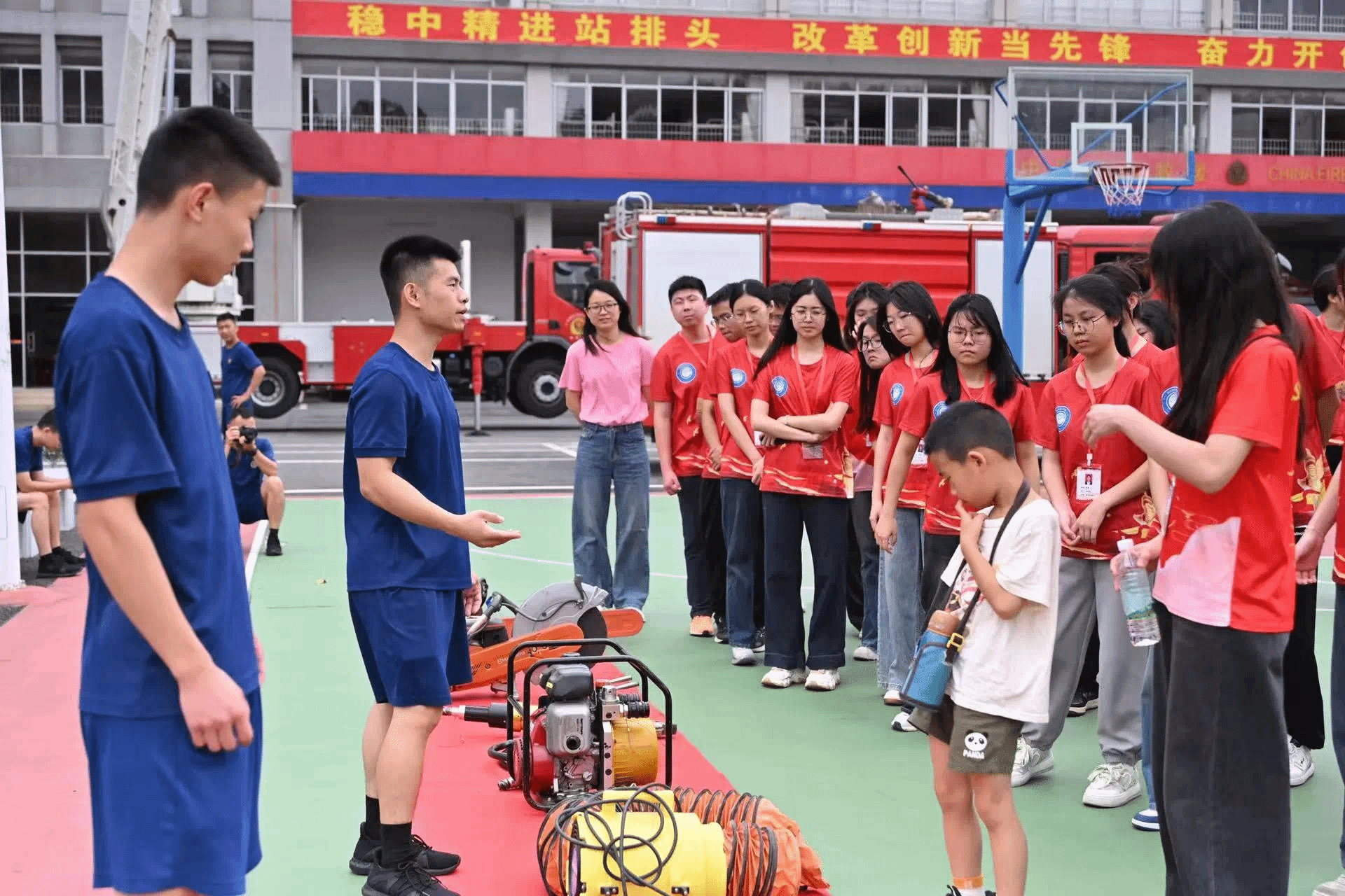 活动当天,小朋友们在志愿者们的陪伴下开启趣味消防知识探索之旅。消防员们通过生动讲解和实物演示,向孩子和志愿者们讲解了火灾预防、火场逃生等知识,现场氛围温馨而有序。在消防员们的专业指导下,亲子家庭和志愿者们先后体验了云梯升降、水枪实操等项目。通过紧张刺激的“实战”演练,大家深刻体会到消防工作的专业性和危险性,切身感受到消防员们日常救援的艰辛与肩负的责任担当。