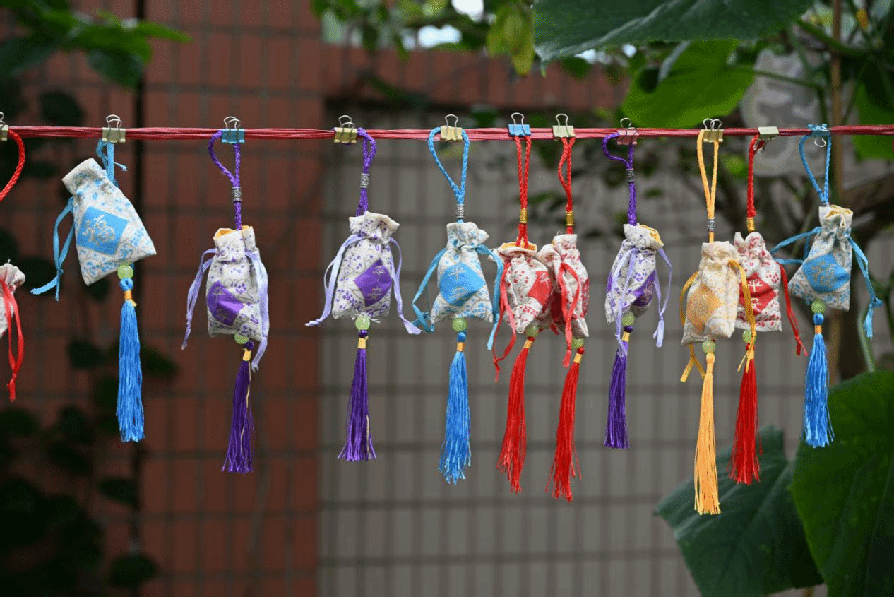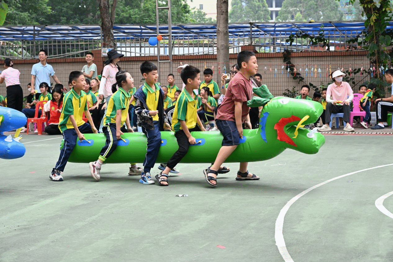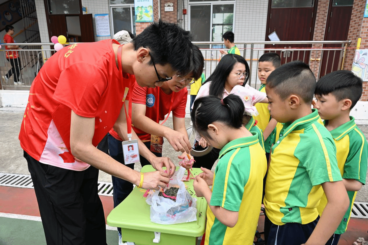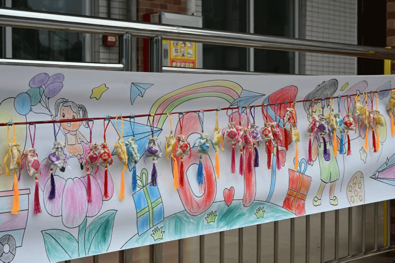 活动中,孩子们在志愿者的陪伴下,用彩笔绘制心中的端午节,让五彩斑斓的龙舟和粽子跃然纸上。随后,志愿者们手把手教孩子们缝制艾草香囊,在志愿者的耐心指导下,他们一针一线地缝制着香囊,不仅体会到传统手工艺的魅力,还在淡淡的艾香中感受到端午驱邪祈福的文化内涵。接着,志愿者们通过趣味游戏的形式,让孩子们用套圈赢取可爱的粽子玩偶,现场欢声笑语不断,气氛热烈。最后,在启智学校的组织下,志愿者们协助开展了创意的“旱地龙舟赛”。孩子们分组协助竞赛,在欢乐中收获友谊,体验到团队协作的乐趣。