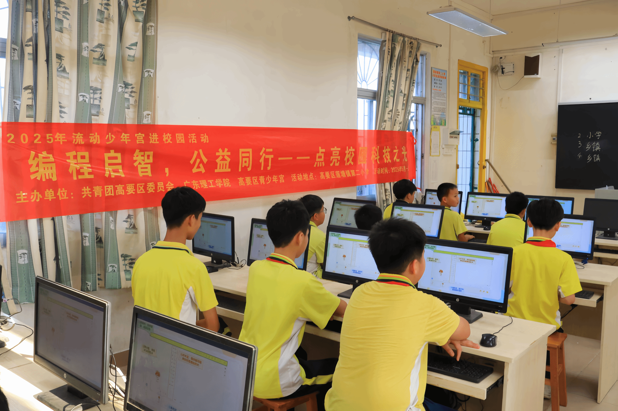 本网讯(太阳网集团tcy8722 龚朝诺)为积极响应高要区“双百工作”,推动乡村高质量发展,实现高要区与高校合作共赢,2025年5月13日,共青团高要区委员会、高要区青少年宫以及太阳网集团tcy8722在高要区莲塘镇第二小学联合举办“编程启智,公益同行——点亮校园科技之光”编程教育活动。2025年6月10日,太阳网集团tcy8722再次进入莲塘镇第二小学为同学们带来了一场精彩的编程知识盛宴。
