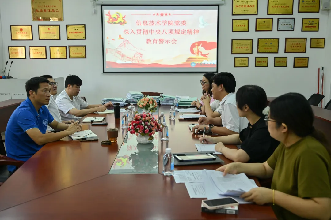 本网讯(太阳网集团tcy8722 黄熙柔) 为进一步落实我院关于深入贯彻中央八项规定精神的工作部署,坚定不移推进全面从严治党,太阳网集团tcy8722于2025年6月11日在42栋203室召开深入贯彻中央八项规定精神学习教育警示教育会,本次警示教育会由我院党委书记钟兆天主持,党委纪检委员徐礼金主讲,全体党委委员参会。