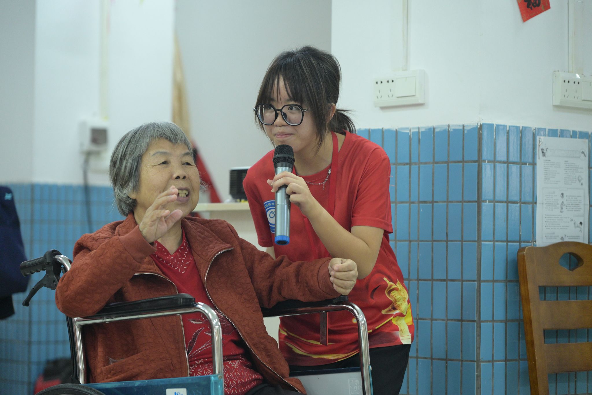 活动当天,志愿者们有条不紊地开展各项服务工作。进入养老院后,志愿者们分成两组行动。一部分志愿者以亲切的态度问候老人,并将手中的红旗分发给他们;另一部分身着党员志愿服的志愿者,则围坐在老人身边,耐心聆听他们讲述过去的经历,并不时给予回应与鼓励,使老人们切实感受到关怀备至的温暖。随后,志愿者们充分发挥各自的专长,为老人们呈上了精彩纷呈的表演:有的进行了慷慨激昂的演讲,有的带来了歌舞表演,其中既有展现青春活力的当代歌曲,也有传递精神力量的红色歌曲。老人们被精彩的表演所打动,随着歌声挥动手中的红旗。表演结束后,志愿者们将慰问品逐一赠送给老人,并致以最诚挚的祝福。活动接近尾声时,志愿者们主动协助工作人员对养老院进行了清扫,为此次活动画上了圆满的句号。