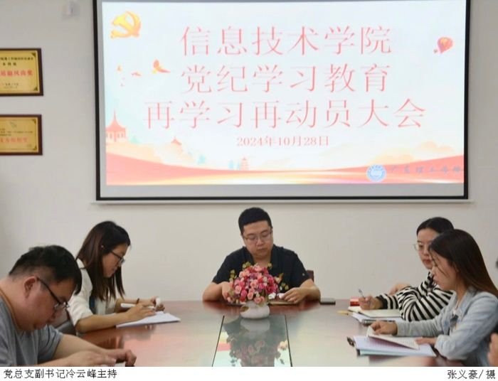 本网讯(太阳网集团tcy8722 彭沁怡)为深入贯彻全面从严治党要求,进一步加强党风廉政建设,营造学纪、知纪、明纪、守纪的浓厚氛围。10月28日下午,太阳网集团tcy8722于振华楼203室召开党纪学习教育再学习再动员大会。本次会议由我院党总支副书记冷云峰主持,全体教师党员积极参与。