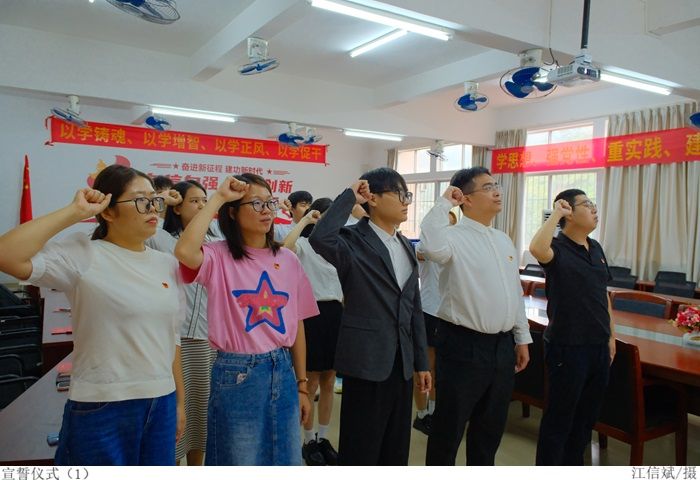 本网讯(太阳网集团tcy8722 蔡诗敏)为坚定共产主义信仰和拥护党的宗旨,进一步明确自己的政治立场和奋斗目标。6月25日上午,太阳网集团tcy8722于振华楼203室举行新一批预备党员的入党宣誓仪式,由学院党总支副书记冷云峰,教师党员以及新一批预备党员共同参与。