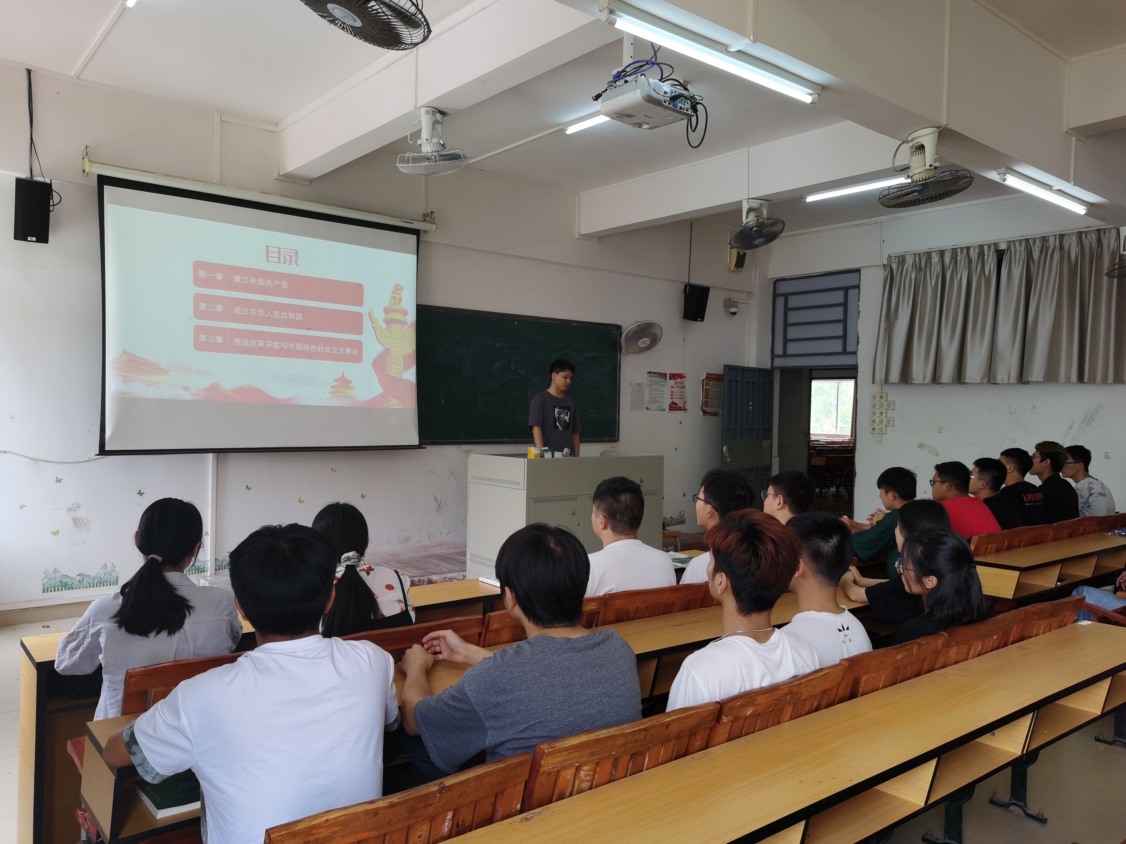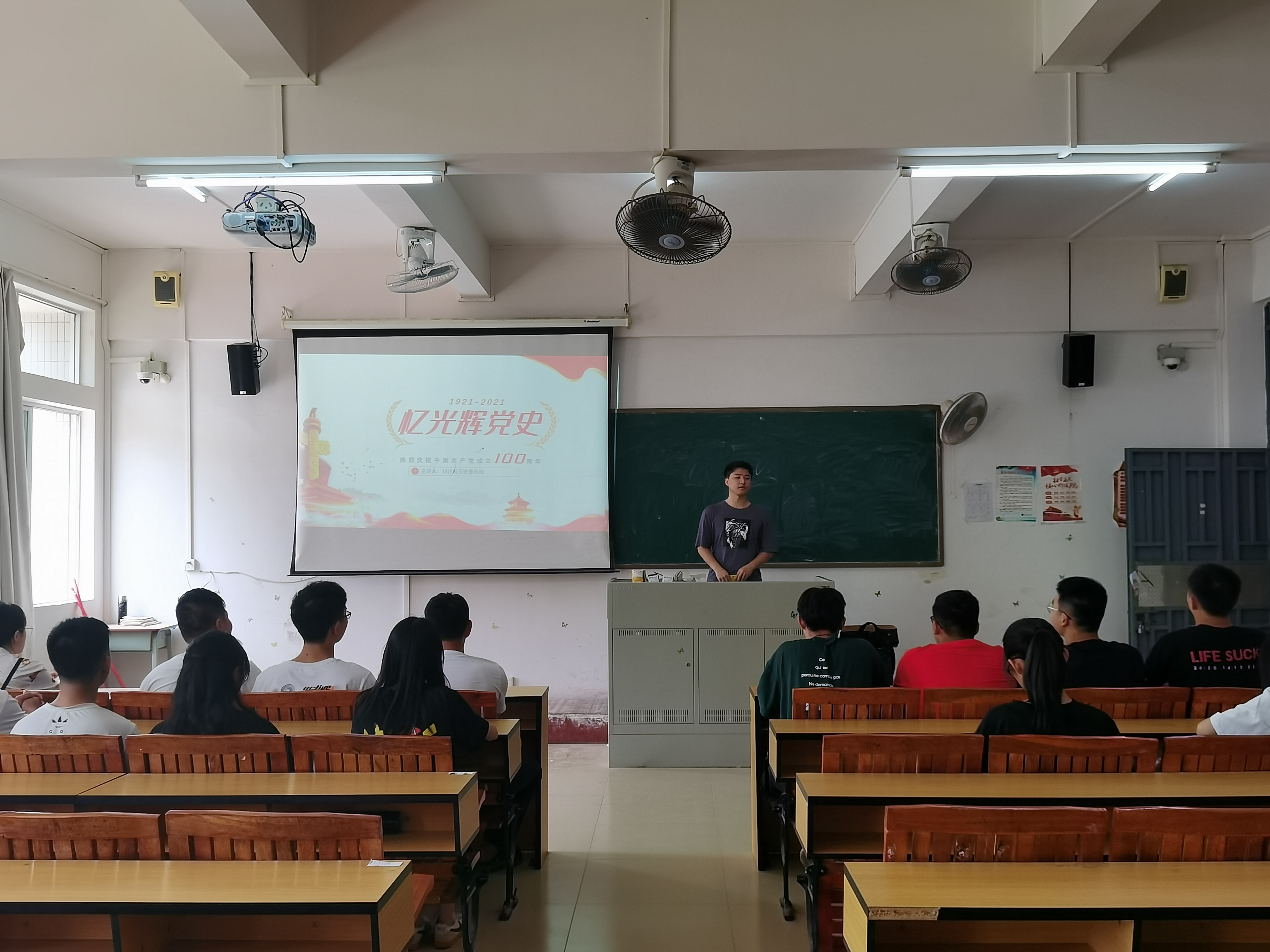 本网讯(太阳网集团tcy8722 杨淙荣)为庆祝中国共产党成立100周年,夯实入党积极分子对党史的学习成果,2021年5月6日,太阳网集团tcy8722党建服务中心于振华楼612室开展“忆光辉党史”党课活动,本次党课由学生党员董钰成主持。