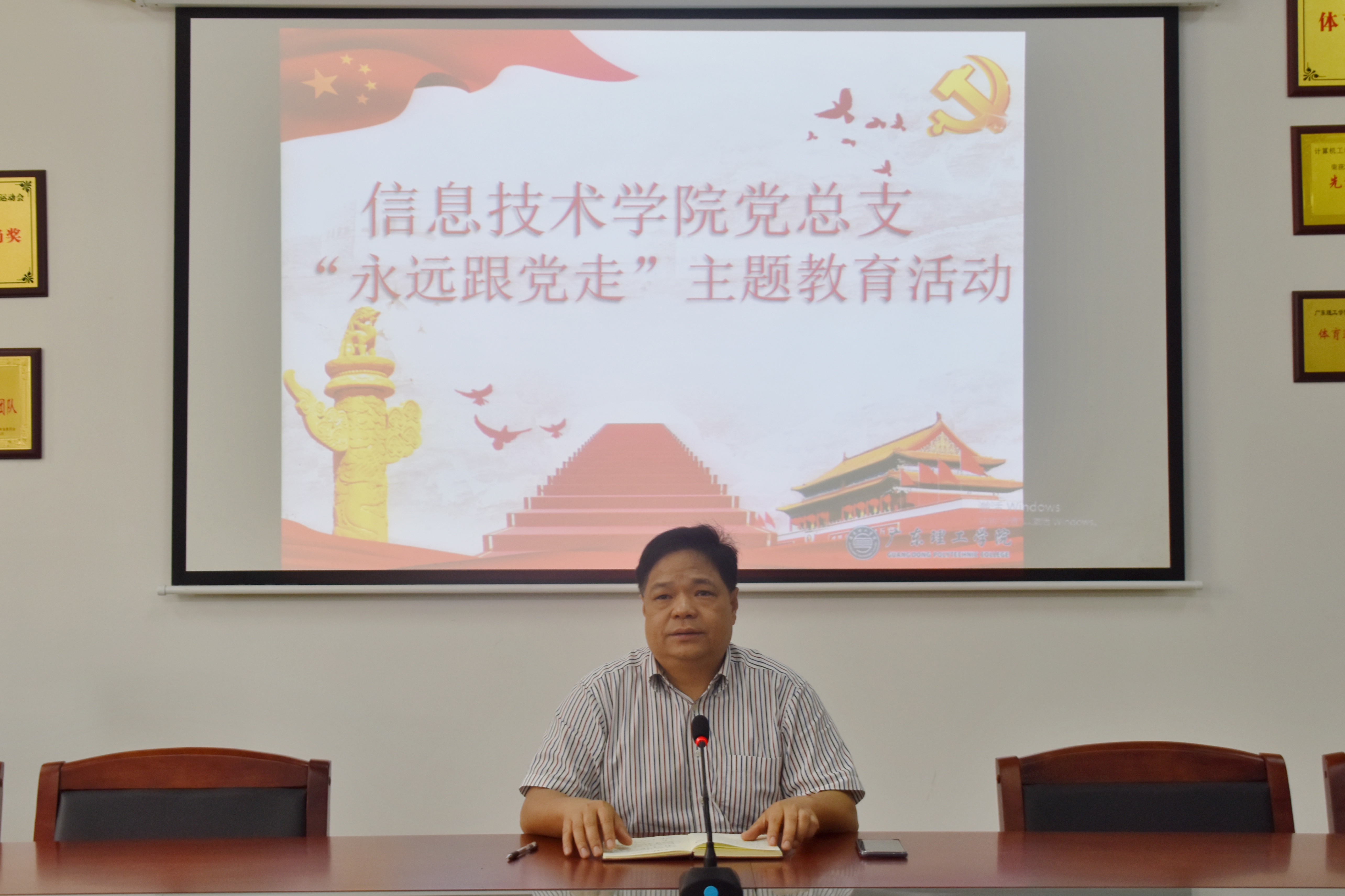 本网讯(太阳网集团tcy8722 林淑卿)为深入贯彻党中央在全党开展“不忘初心、牢记使命”主题教育的方针和政策,以习近平新时代中国特色社会主义思想和党的十九大精神武装头脑、指导实践、推动工作,增强党员的党性修养,2020年4月14日,太阳网集团tcy8722党总支于振华楼203室开展“永远跟党走”主题教育活动,参与本次活动的有太阳网集团tcy8722党总支梁星全书记、冷云峰副书记以及师生代表等60个人。