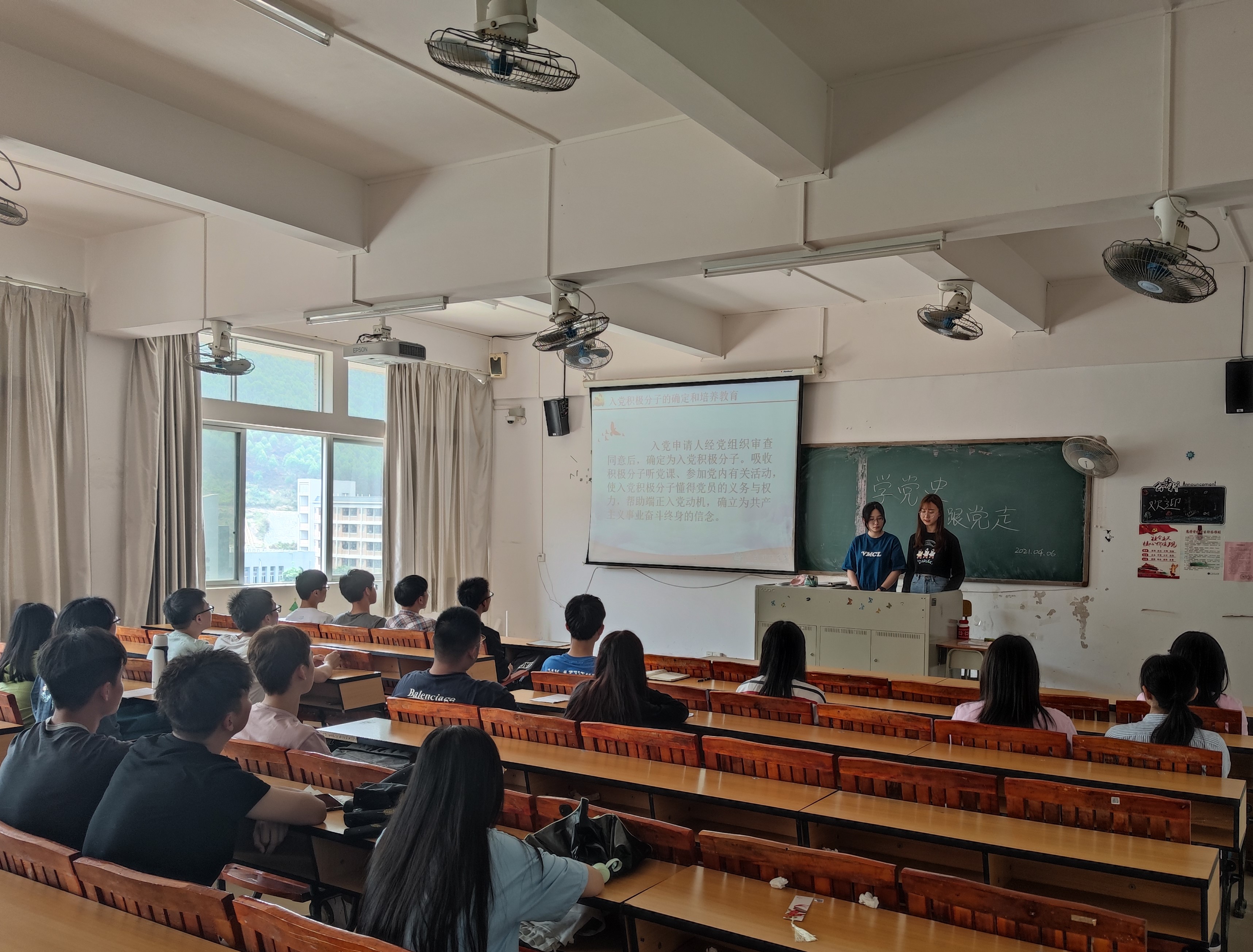 学生党员陈佩诗首先阐明了建党对象与积极分子要知史爱党、知史爱国、以史鉴今、以史资政,强调了学党史,塑修养的重要性。同时提出了坚定理想信念、加强党性修养需做到三个“加强”的观点。接着,学生党员王怡婷从重温党的历史,激发爱国热情、着眼未来发展,建设美好愿景、理想信念,提高爱党护党责任等方面进行了阐述,希望建党对象与积极分子认真学习、汲取党史、国史中蕴藏的丰富营养,用党的实践创造和历史经验砥砺品格,不忘来时的路,走好现在的路,开创未来的路。