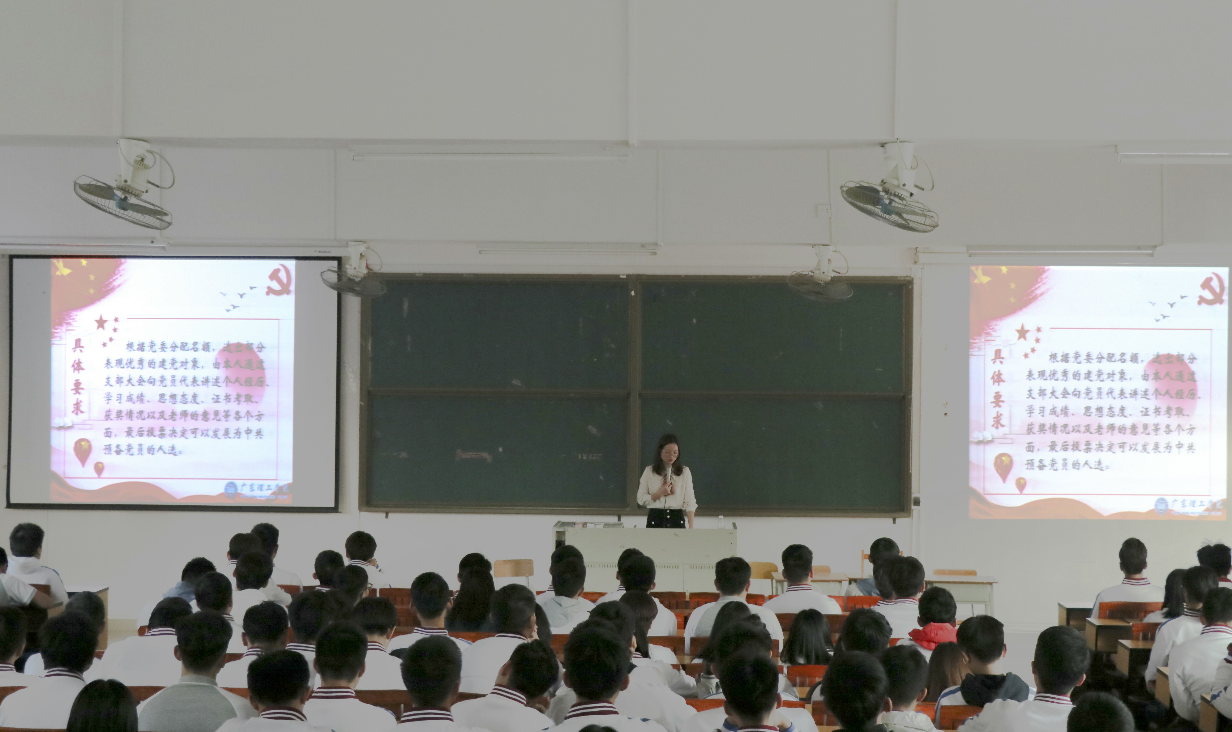 党课伊始,胡娇铃老师进行自我介绍。她以生动有趣的方式引导入党积极分子主动了解党课内容,并从学习党的十九届五中全会、学习贯彻落实《习近平谈治国理政》第三卷、习近平总书记出席深圳经济特区建立40周年庆祝大会重要精神、贯彻习近平总书记重要讲话和重要指示批示精神、入党流程五个主题展开本次党课。胡娇铃老师在讲课过程中全面地讲解了党组织的考核要求,呼吁入党积极分子严于律己,争取早日入党。学生党员邹润华为入党积极分子介绍入党的必备条件,希望积极分子能以学业为中心,牢记勤奋学习的青年使命。