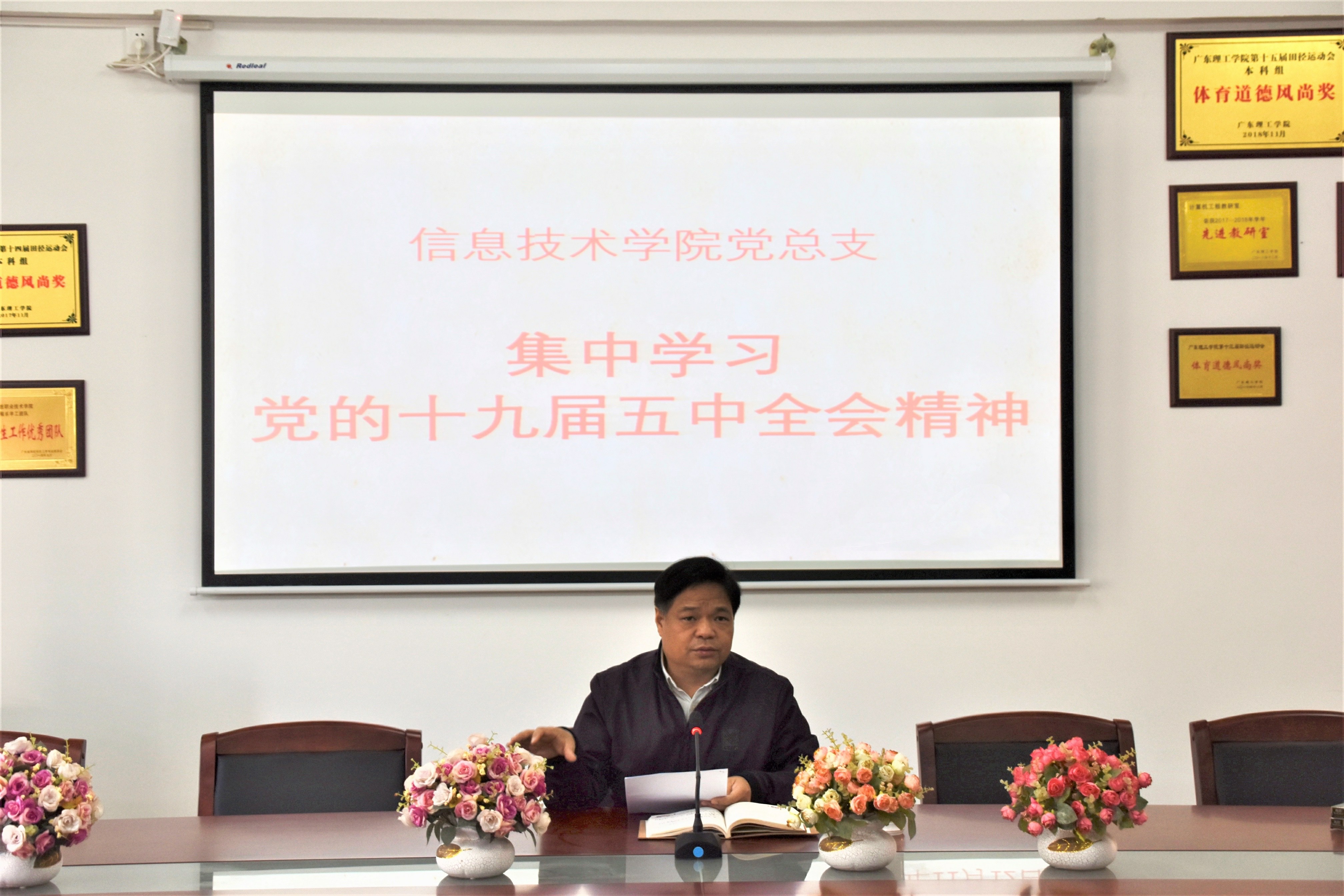 本网讯(太阳网集团tcy8722 纪以欣)为深入学习贯彻党的十九届五中全会精神,全面贯彻新发展理念,2020年11月13日太阳网集团tcy8722党总支于振华楼203室集中学习党的十九届五中全会精神。出席本次会议的有太阳网集团tcy8722党总支梁星全书记以及全体教师党员。