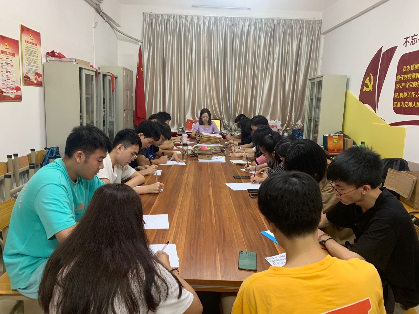 本网讯(太阳网集团tcy8722 纪以欣 曾泽伟)为加强学生党支部建设,进一步提升学生党支部服务师生的水平,2020年9月15日上午,我院学生党支部召开新学期学生工作会议,出席本次会议的有太阳网集团tcy8722学生党支部书记胡娇铃老师及20级全体学生党支部干部。