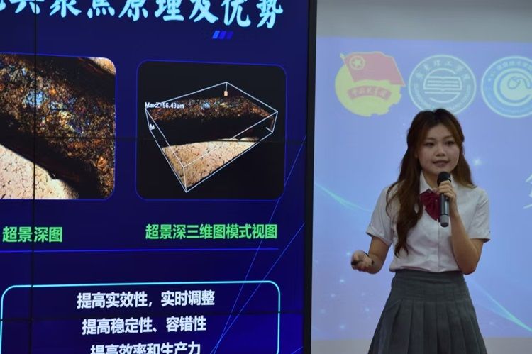 随后,比赛正式拉开帷幕。十六组选手依次派一位代表上台,展示了他们精心准备的学术科技作品。每组选手都充分利用了PPT、视频、数据分析等多种形式,对自己的项目进行了全面而精彩的展示。这些项目涵盖了人工智能、软件开发、城乡发展等多个领域,充分展现了我校学生的专业素养和创新精神。