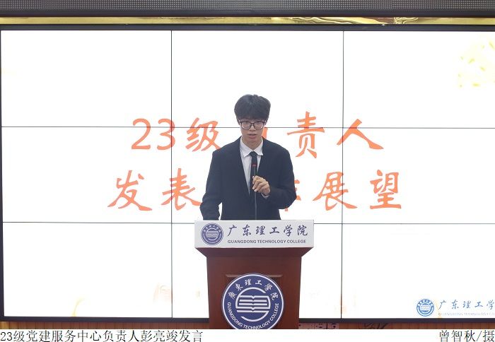 23级负责人彭亮竣上台发表工作展望,表示将会认真完成接下来的每一份工作,坚守滚烫初心,为学院建设发光发热。