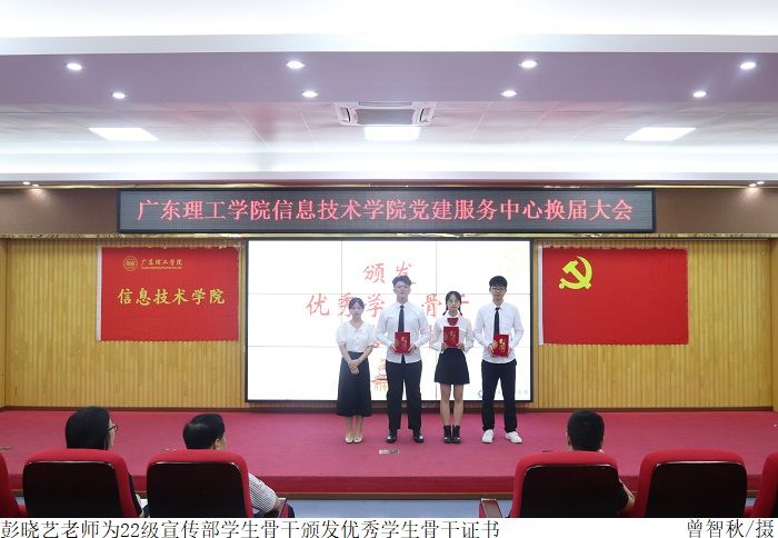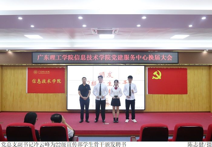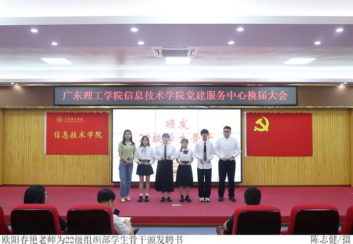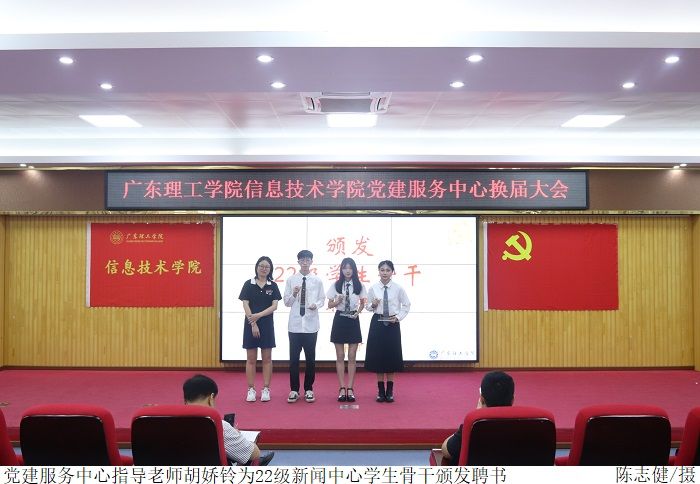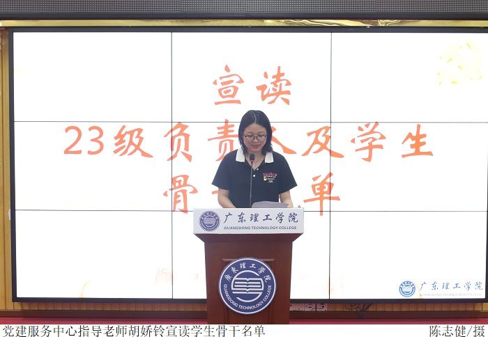 大会期间,党建服务中心指导老师胡娇铃上台宣读23级党建服务中心负责人以及学生骨干名单,她表示本次换届不止是一次工作的交接,更是责任的传承。希望党建服务中心新一届学生骨干能够继续秉持一贯的优良作风,自信自强、守正创新、踔厉奋发、勇毅前行,以更加饱满积极的心态开展新学年的工作,让党建服务中心迸发出更多的可能性。