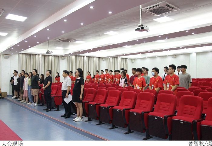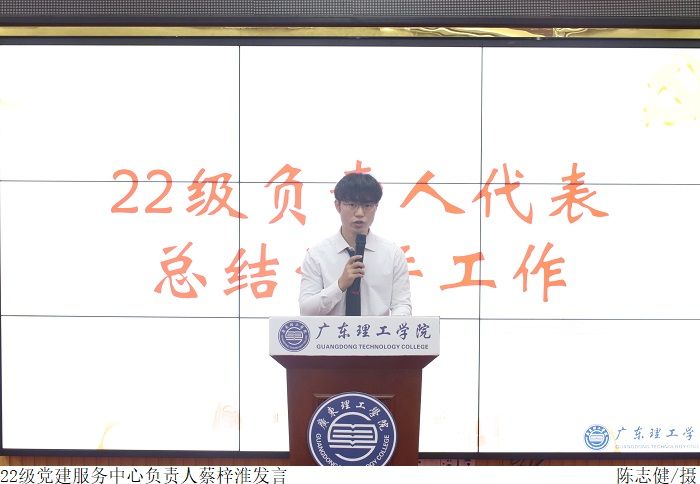 大会伊始,全体肃立奏唱国歌。随后,22级负责人代表蔡梓淮上台作本学年工作总结,他回顾过去一年党建服务中心举办的各项活动,并做出详细的总结,最后对党建服务中心未来的工作提出了建议和展望。