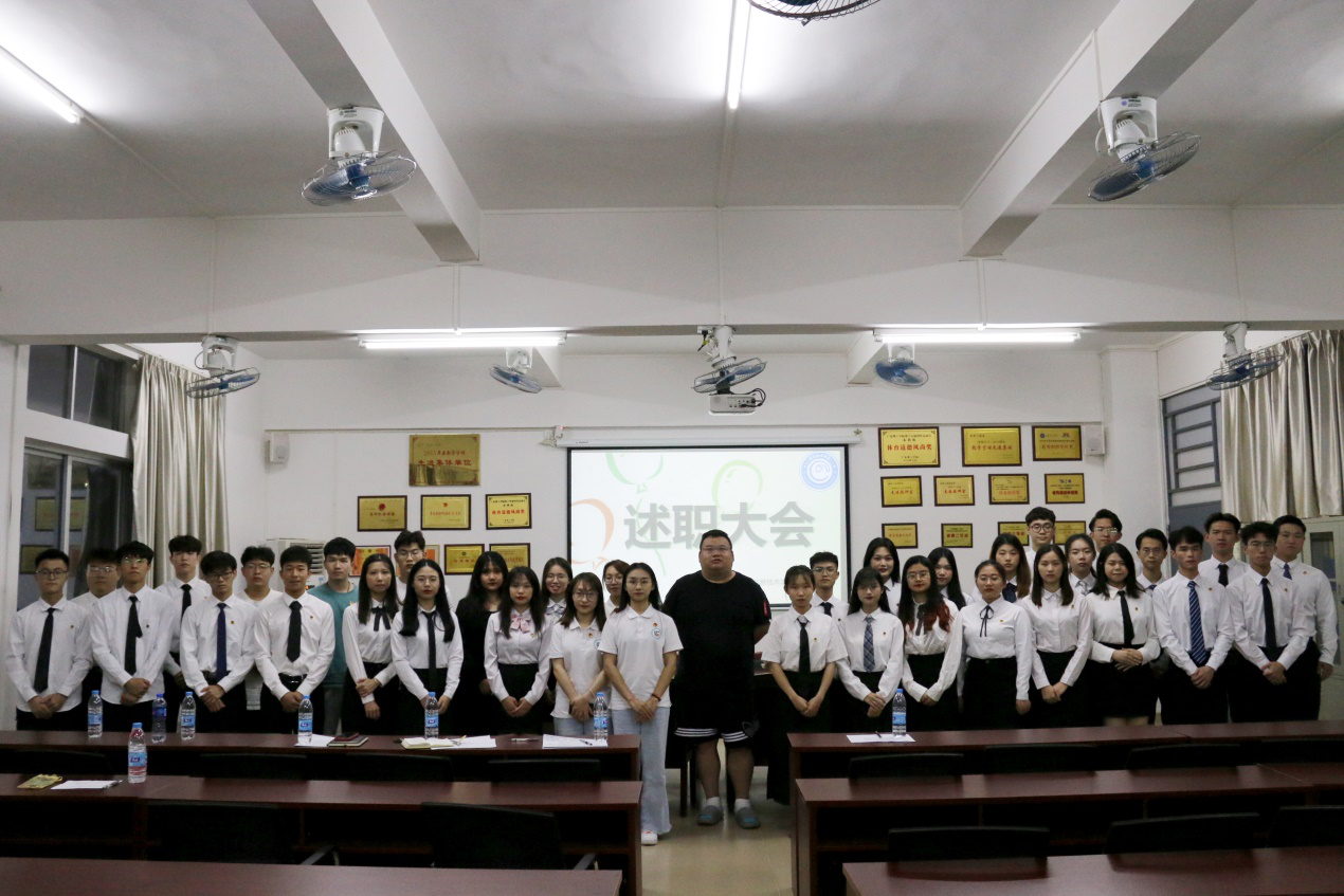 伴随着庄严的国歌声,本次大会拉开了序幕。首先主持人对在场人员的到来表示热烈感激。接着由各部门部长及办公室首先述职,各部长以PPT的形式对本部门上学年以及近期的工作情况做出总结,并向大家介绍了各自所属方的部门简介、部门职责。并总结了上学年以及近期工作上的得失,结合自身部门特点,向在场成员分享了宝贵的工作经验与在近期内发现的工作之中的不足以及相对应的解决措施,和对未来目标的计划及实施方案。在八位部长及办公室代表述职结束后,由执行主席肖顺辉为代表,为太阳网集团tcy8722团委、学生会上学年的工作作出总结,并对之前各部门及办公室的工作作出小结和点评。其后,聂镇老师对本学期团委、学生会进行了点名表扬,表示了对太阳网集团tcy8722团委、学生会发展的期待与信心。最后,太阳网集团tcy8722团委、学生会述职大会在缓缓响起的团歌中圆满结束。