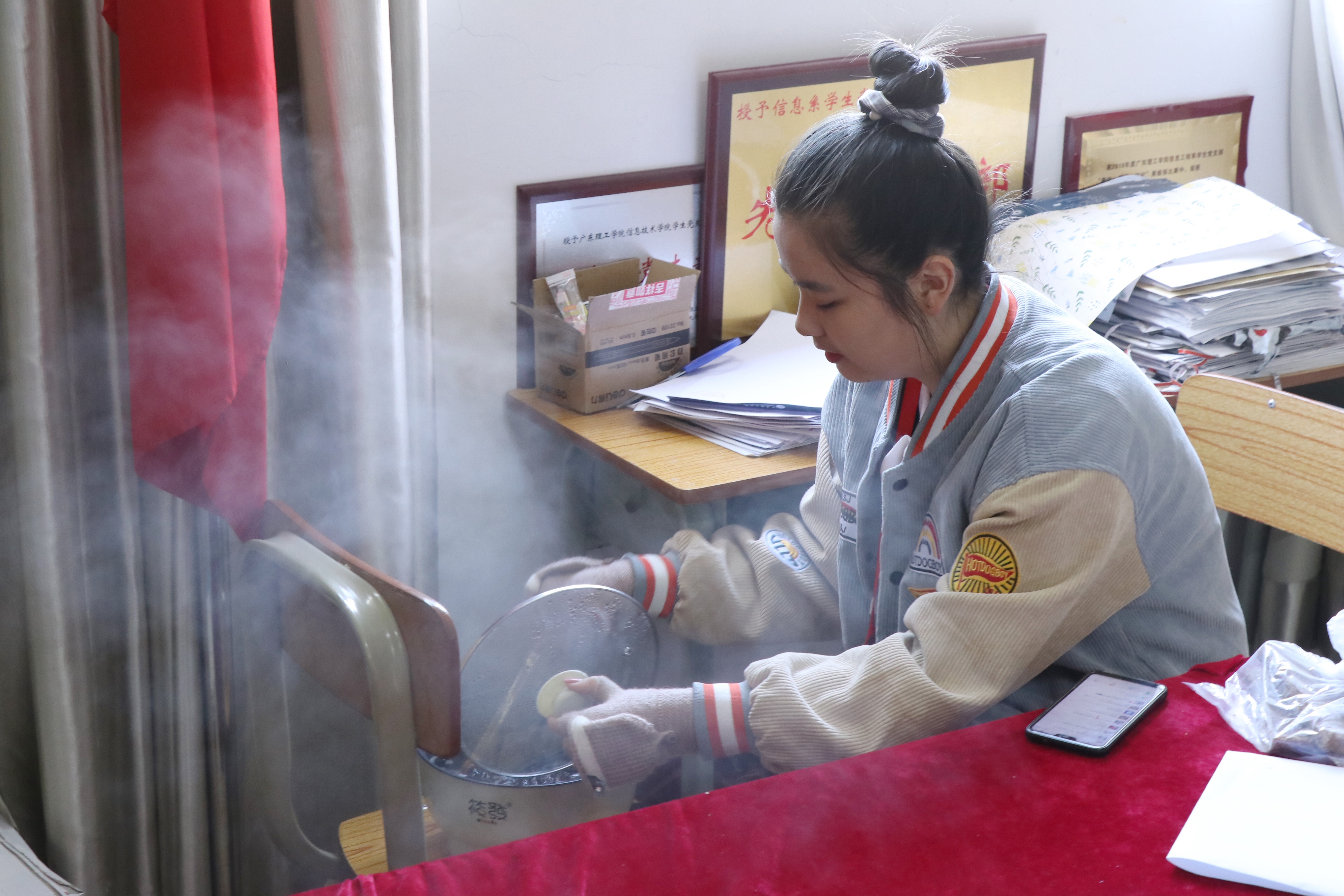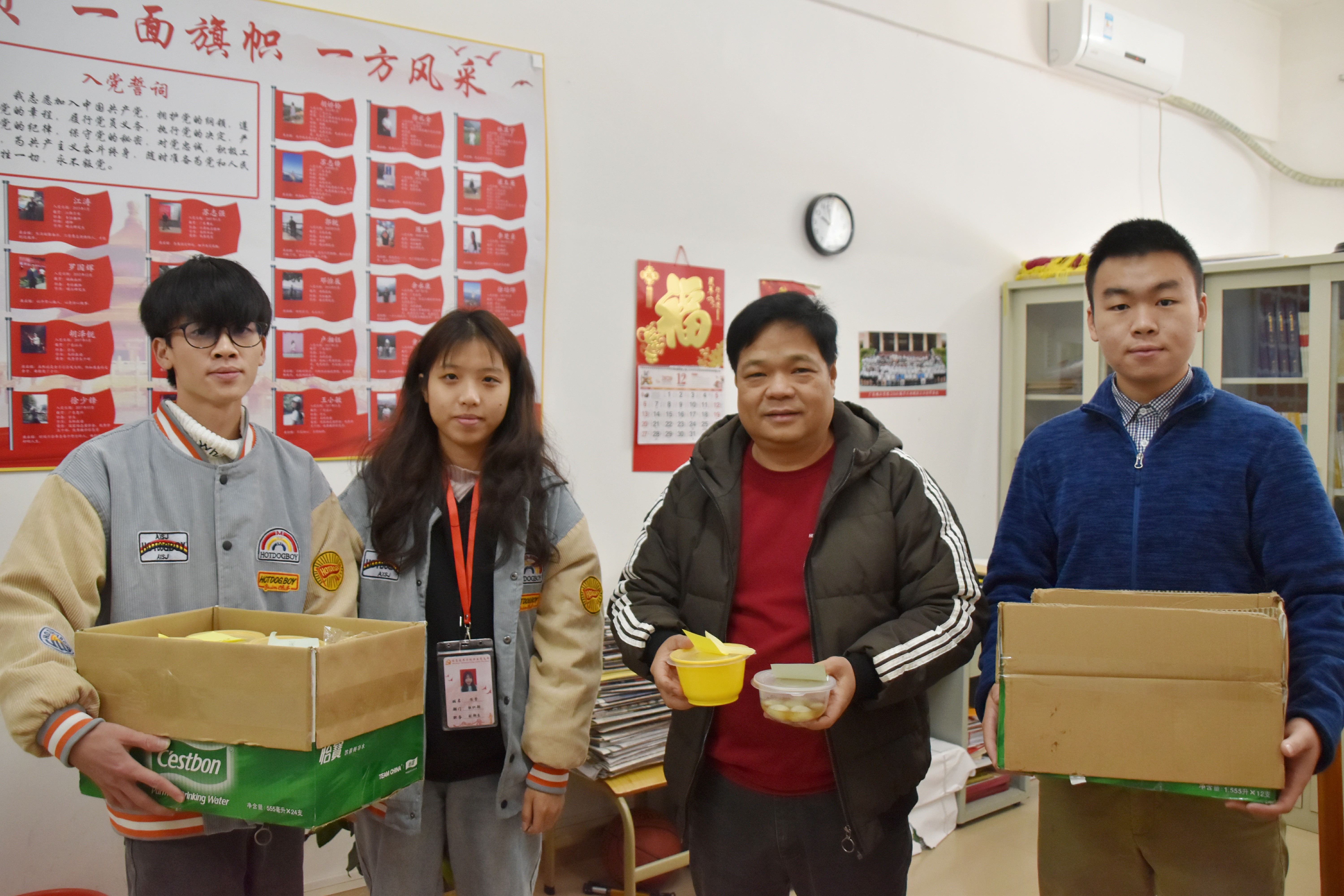 在胡娇铃老师的组织下,学生党支部成员准备好纸碗与食具并用心煮制汤圆与饺子,在每一盒汤圆与饺子的盖上粘贴便利贴以传达对老师的冬至问候。通过为老师们奉上一碗热腾腾的汤圆,向老师送去一份温暖和祝福,让远离家乡的老师们感受到传统节日的气氛。