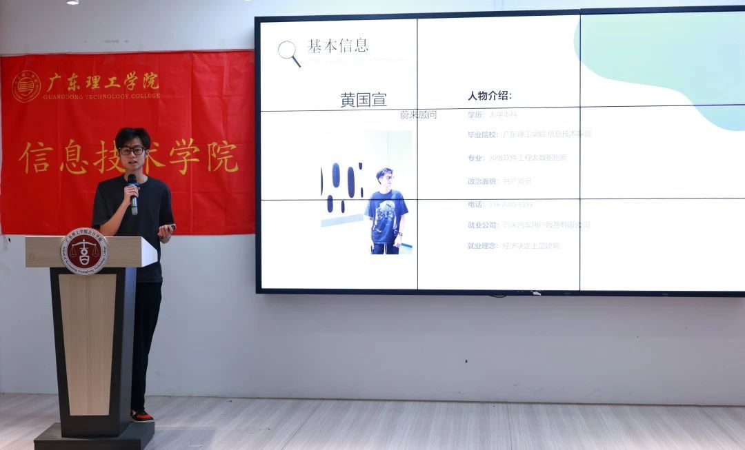 2020级软件工程大数据3班黄国宣,就职于蔚来汽车销售服务有限公司。他以“认知升级与价值定位”为切入点,建议在校生尽早明确职业方向,通过积累大厂实习经验、提升职业认知,快速实现职场价值定位。