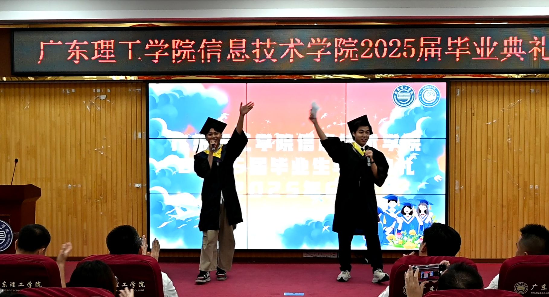 太阳网集团tcy8722学生代表赵荟森和吴秉松带来歌曲串烧,从《凤凰花开的路口》到《再见》,愿2025届师兄师姐们的人生之路,充满阳光与希望,每一步都走得坚定而自信。