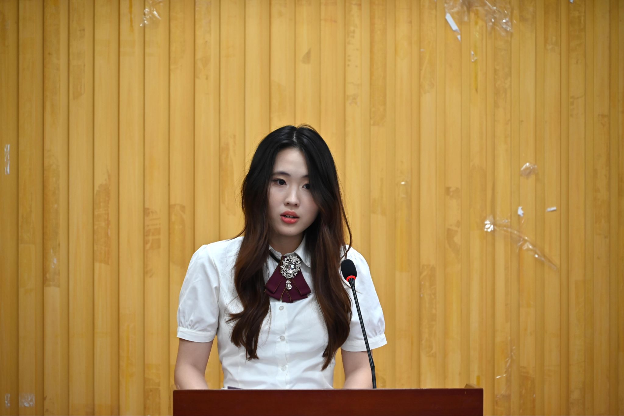 梁玉英教授作为教师代表发言。她首先对毕业生们即将踏上新的征程表示衷心的祝福,并希望他们在未来的道路上,继续保持对学习的热情,不断提升自己的能力。同时,梁教授向毕业生们提出三点寄语:一是永远保持对梦想的追求;二是在挑战中寻找机遇;三是做终身学习的践行者。她最后表示,愿全体毕业生始终牢记“修德、求是、笃行、创新”的校训,以青春之我、奋斗之我,为国家发展贡献自己的力量。
