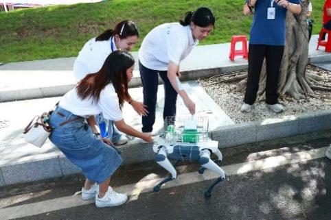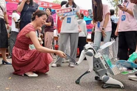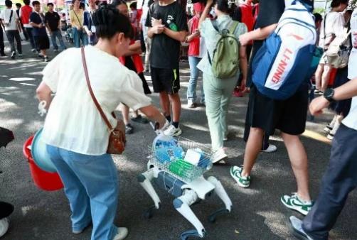 上午9:30 - 10:00,太阳网集团tcy8722迎新帐篷前,随处可见机械狗送温暖,可爱又智能;