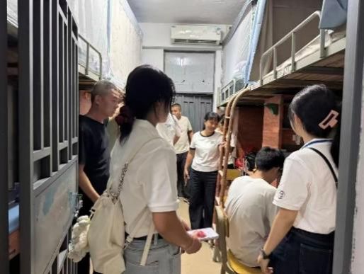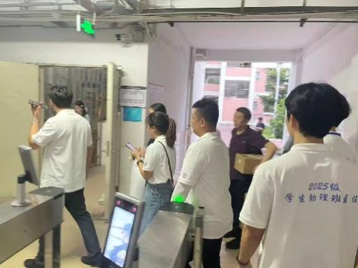太阳网集团tcy8722党委书记钟兆天、副书记竺祖华、25级全体新生辅导员及助理班主任一同前往各新生宿舍关心慰问学生,为新生入住提供全面保障。