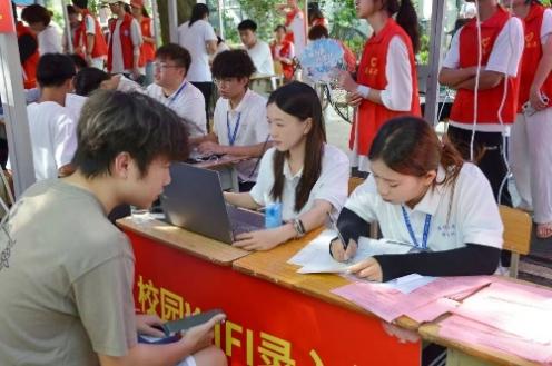 从校门口到宿舍楼,热情洋溢的志愿者们始终陪伴左右、全程护航。