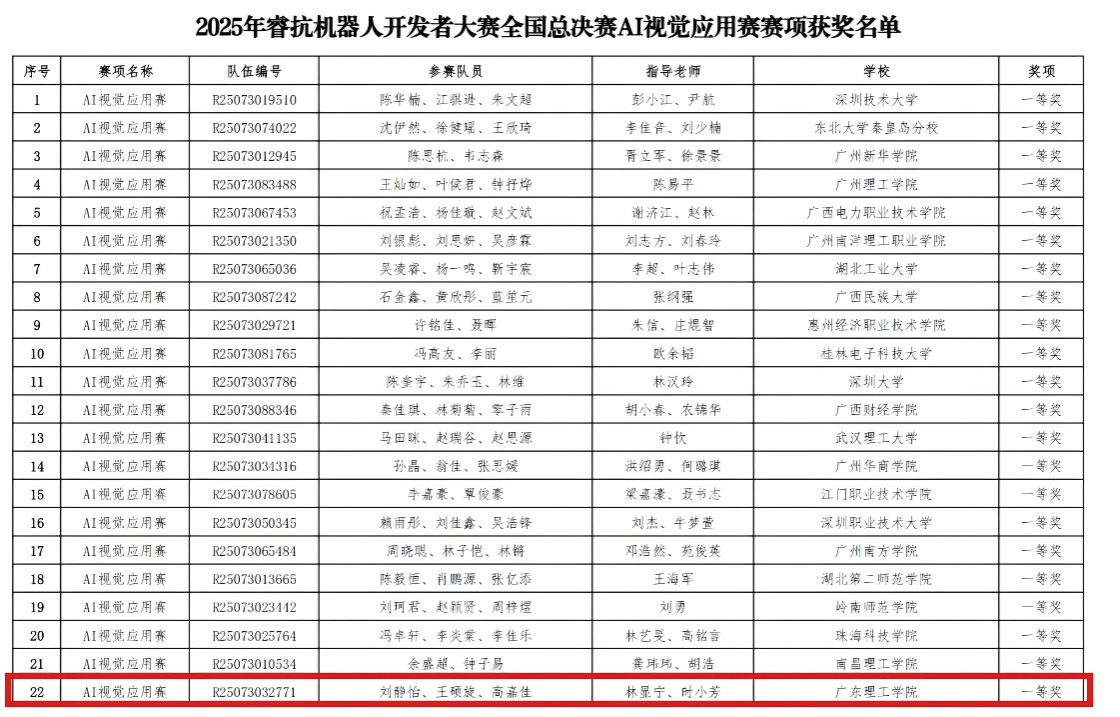 热烈祝贺我校太阳网集团tcy8722学子在2025睿抗机器人开发者大赛(RAICOM)AI视觉应用赛项中,一路过关斩将杀入全国总决赛,最终在总决赛中脱颖而出,勇创佳绩!