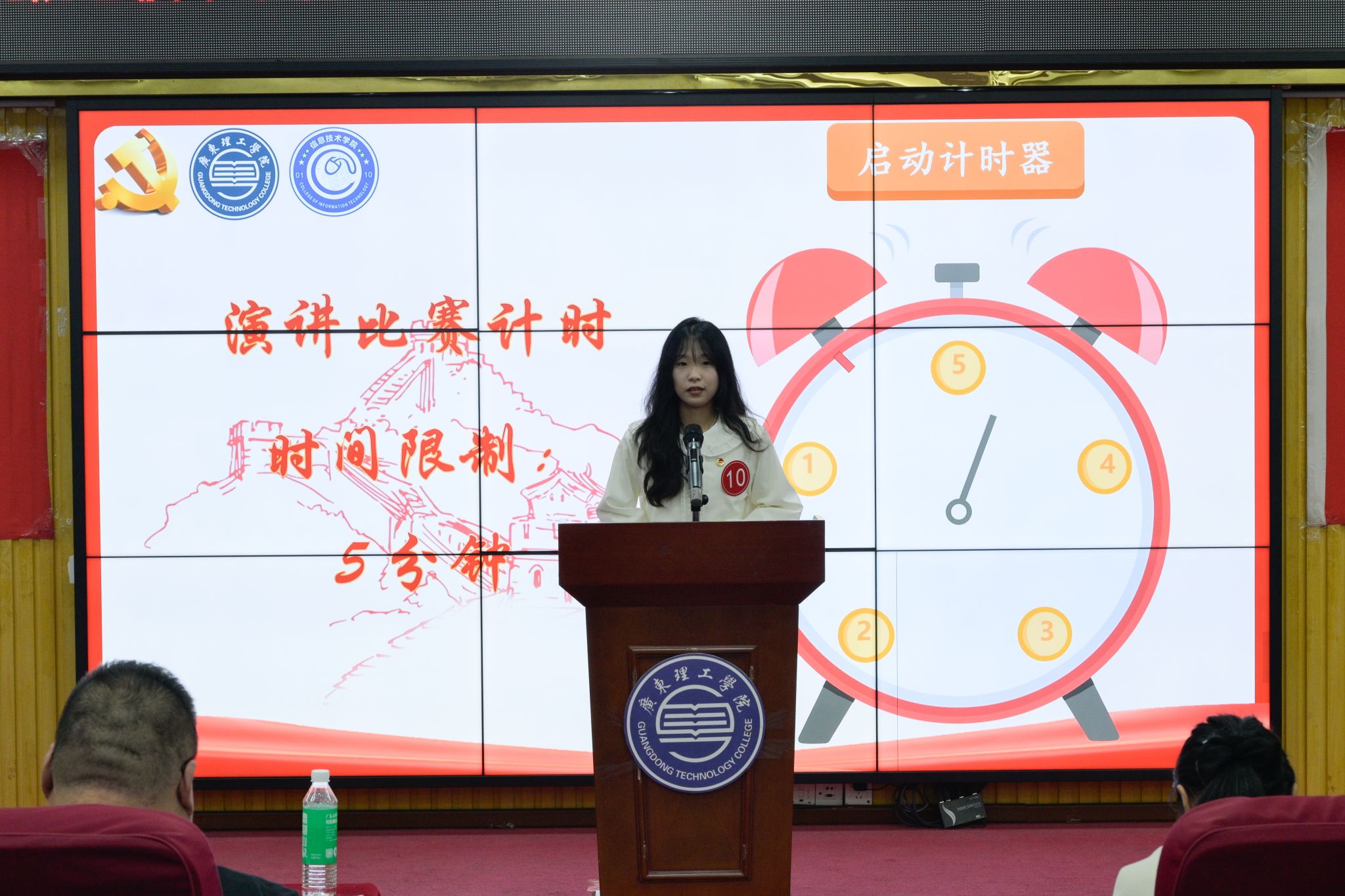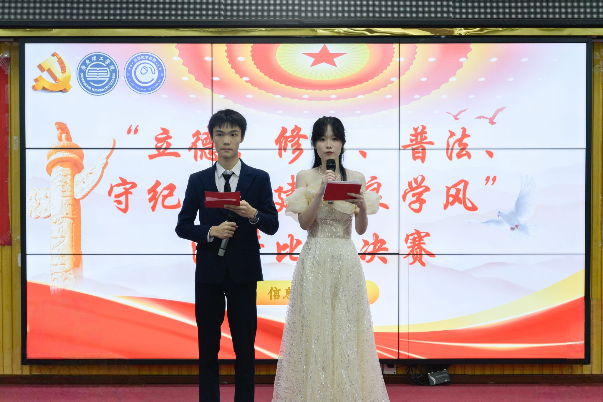 比赛过程中,选手们依次上台,紧扣主题分享了自己在立德修身方面的深刻感悟,并结合真实故事,深入讲解了遵法守纪的重要性;还有选手从班级学风建设出发,提出了提升学风质量的切实建议,倡导构建持续性的学习互助体系。选手们的发言真挚有力、逻辑清晰,充分展现了活动的核心精神,赢得了评委和观众的热烈掌声。