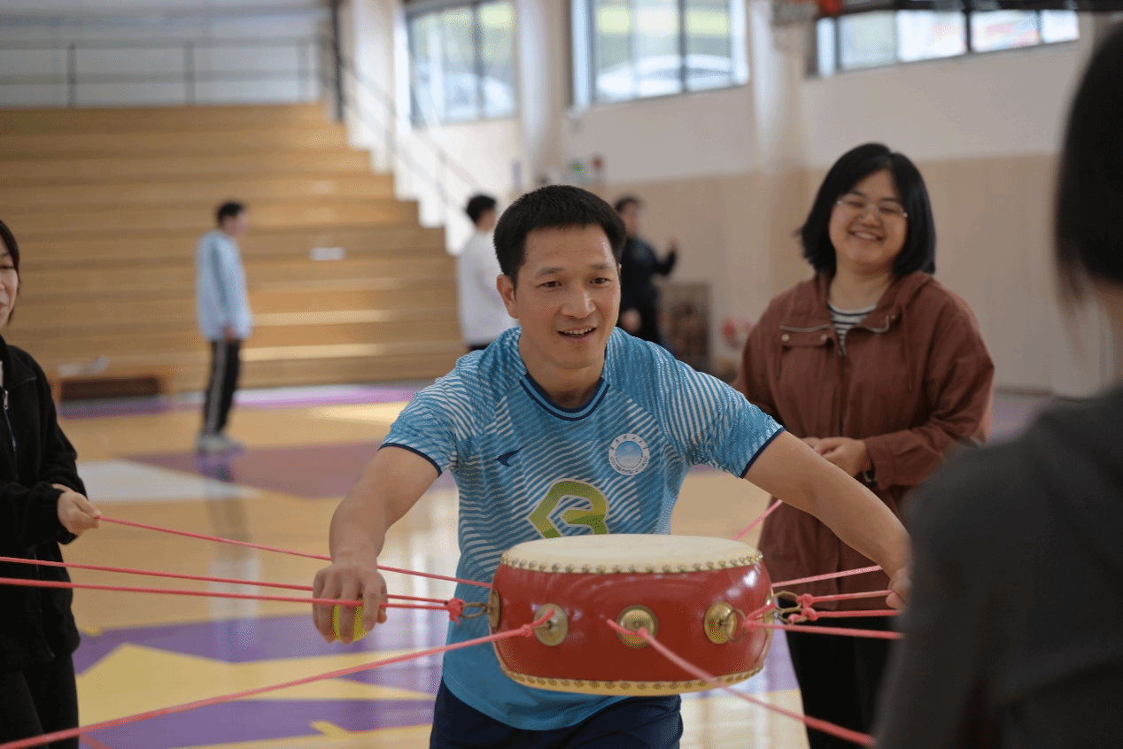 赛场上,我院教职工褪去笔灰,化身运动健将,在一分钟跳绳、飞盘九宫格、两人三足接力赛中奋勇争先。跳绳区,他们脚步轻快争高分;飞盘区,他们瞄准投掷展精准;接力赛道上,他们绑腿并肩显默契。无论是单人突破还是团队协作,都彰显着“不负韶华勇拼搏”的风采,成为赛场亮眼风景。