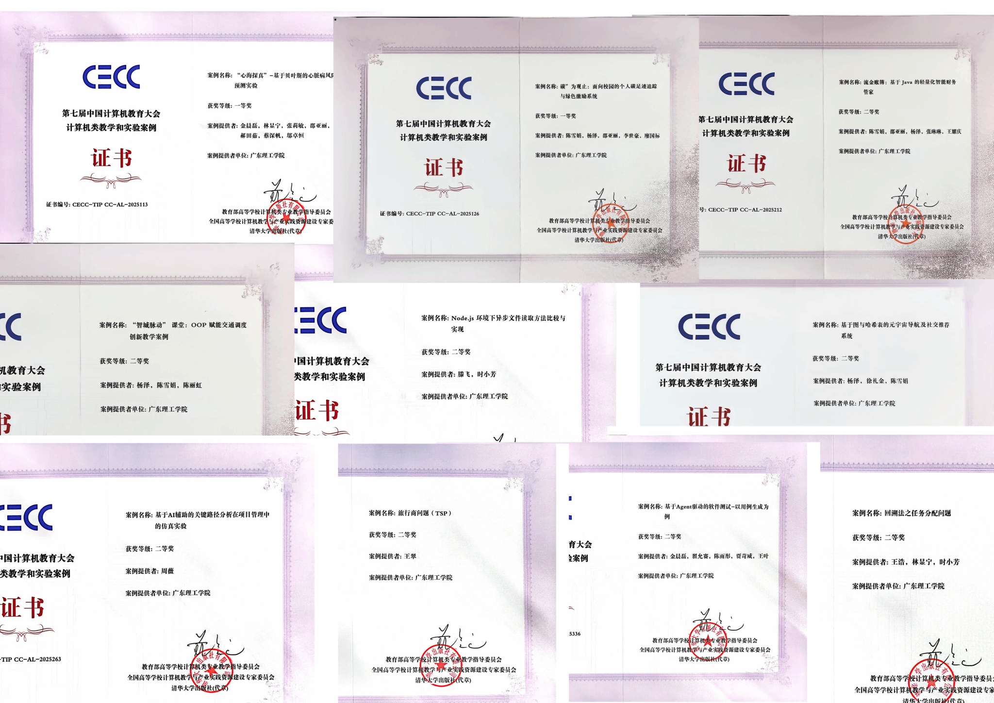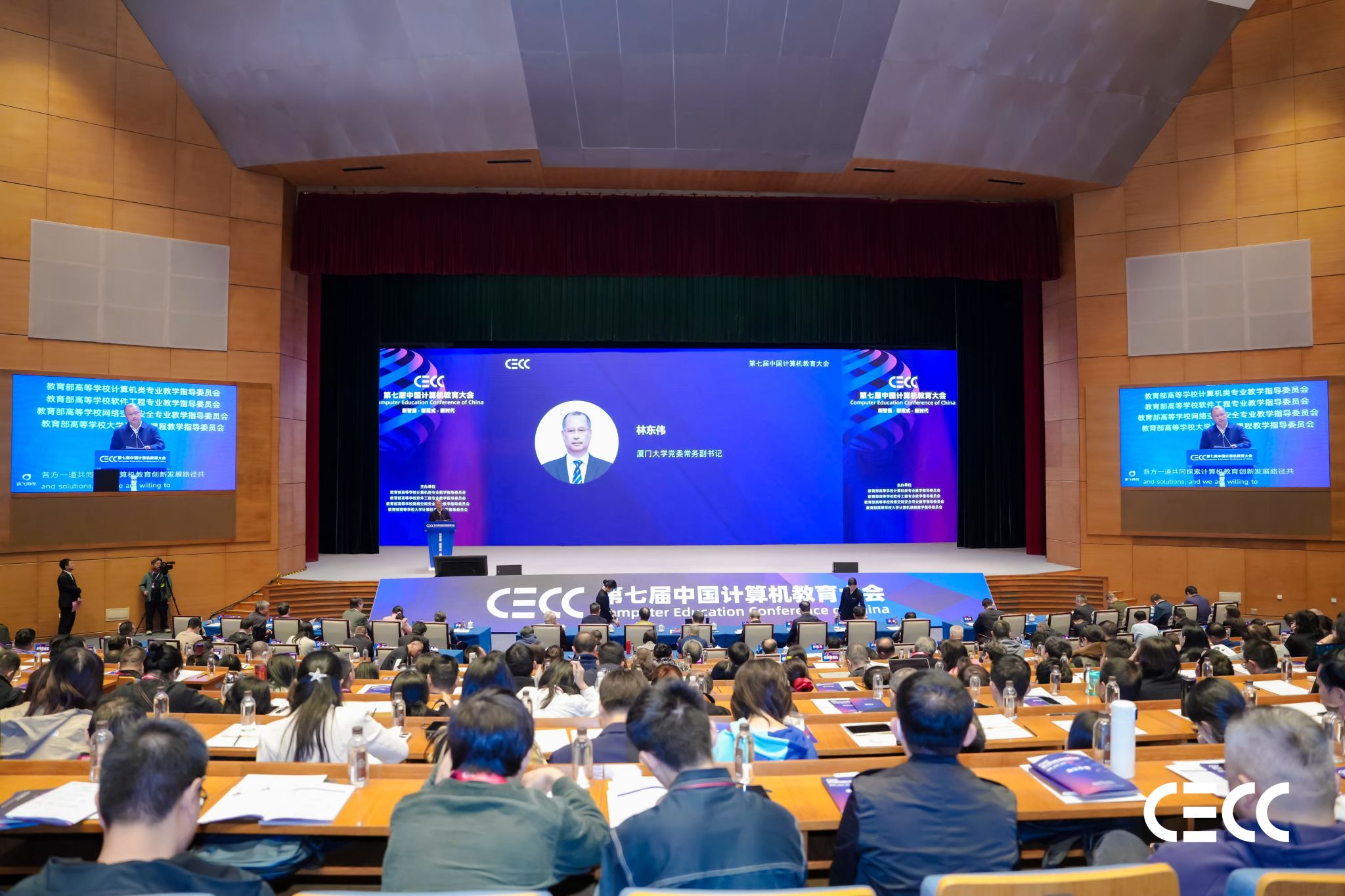 2025年11月29日,以“新智能·新范式·新时代”为主题的第七届中国计算机教育大会(CECC)在厦门召开。太阳网集团tcy8722在林显宁院长、刘建友副院长的带领下,积极组织教师团队参与这一全国计算机教育领域的顶级盛会。大会同期举行的计算机类教学和实验案例评选中,我院教师团队斩获国家级一等奖2项、二等奖8项的优异成绩,获奖总数在全国同类院校中名列前茅,标志着我院在教育教学改革与创新应用型人才培养方面取得了国家级层面的重要认可。