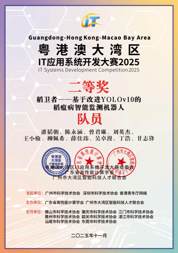 《稻卫者——基于改进YOLOv10的稻瘟病智能监测机器人》获二等奖 |