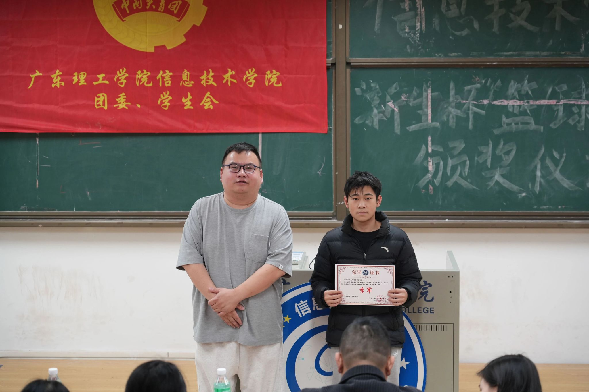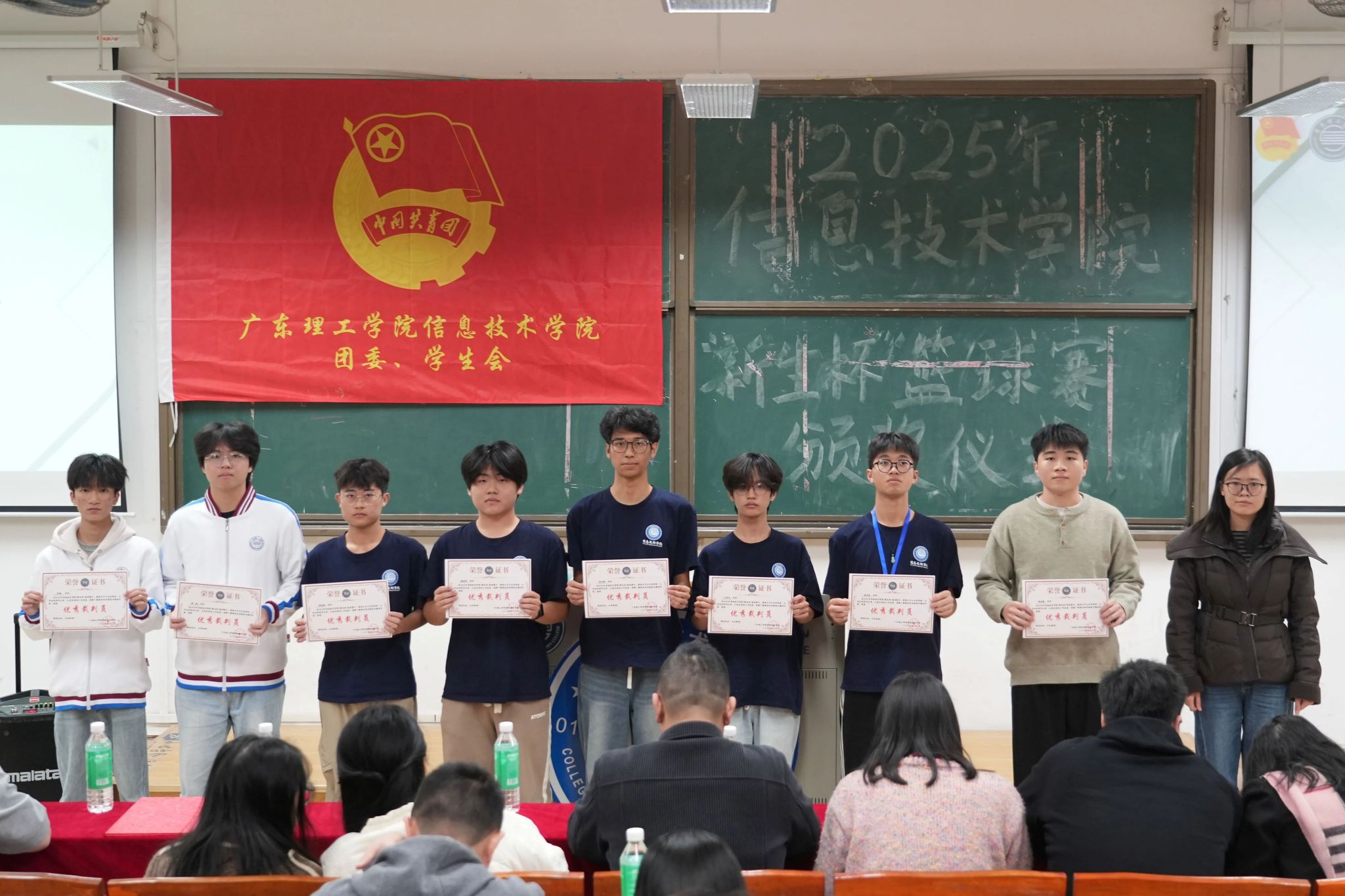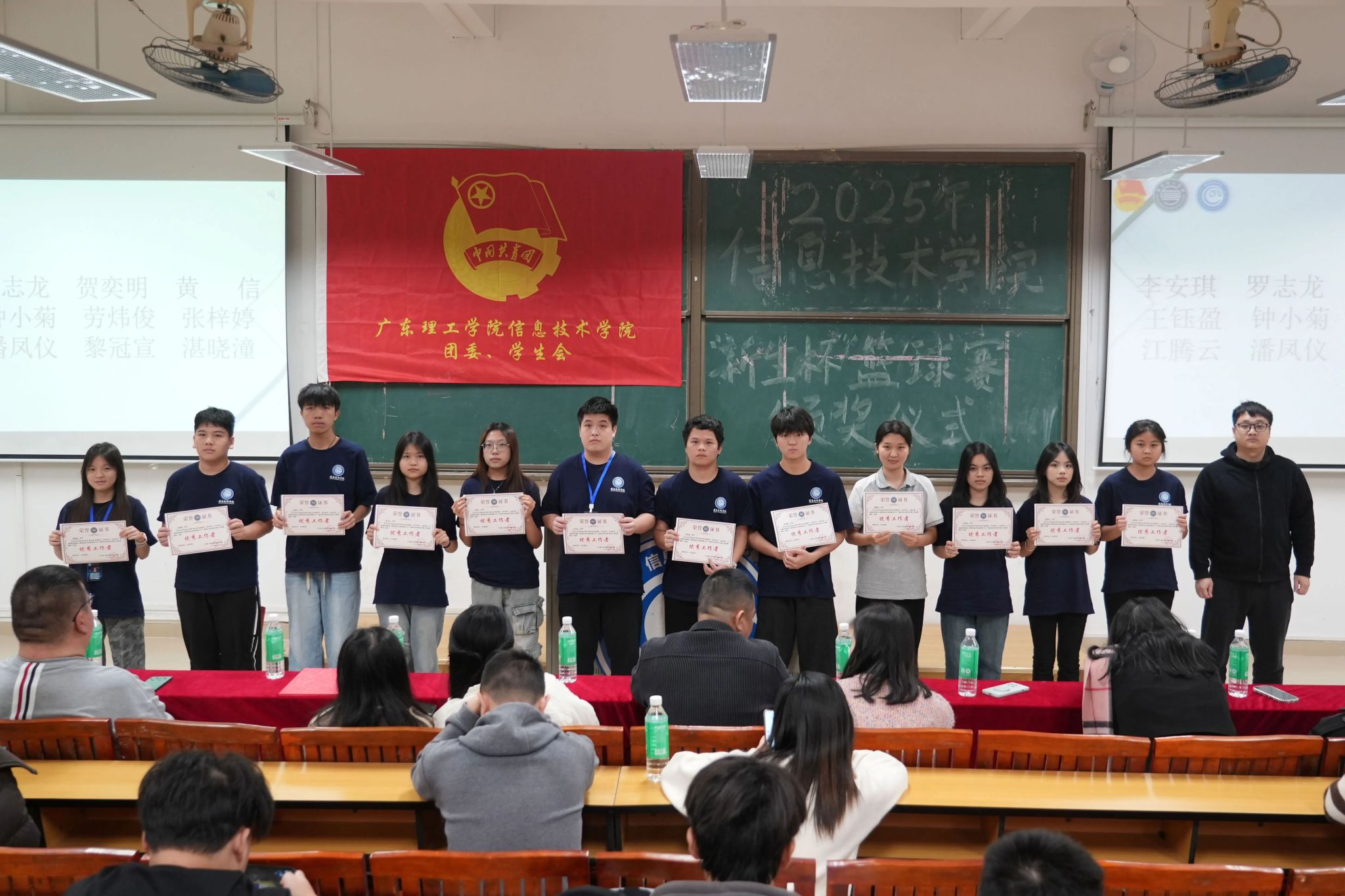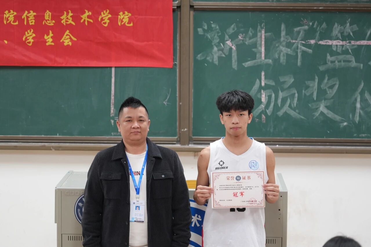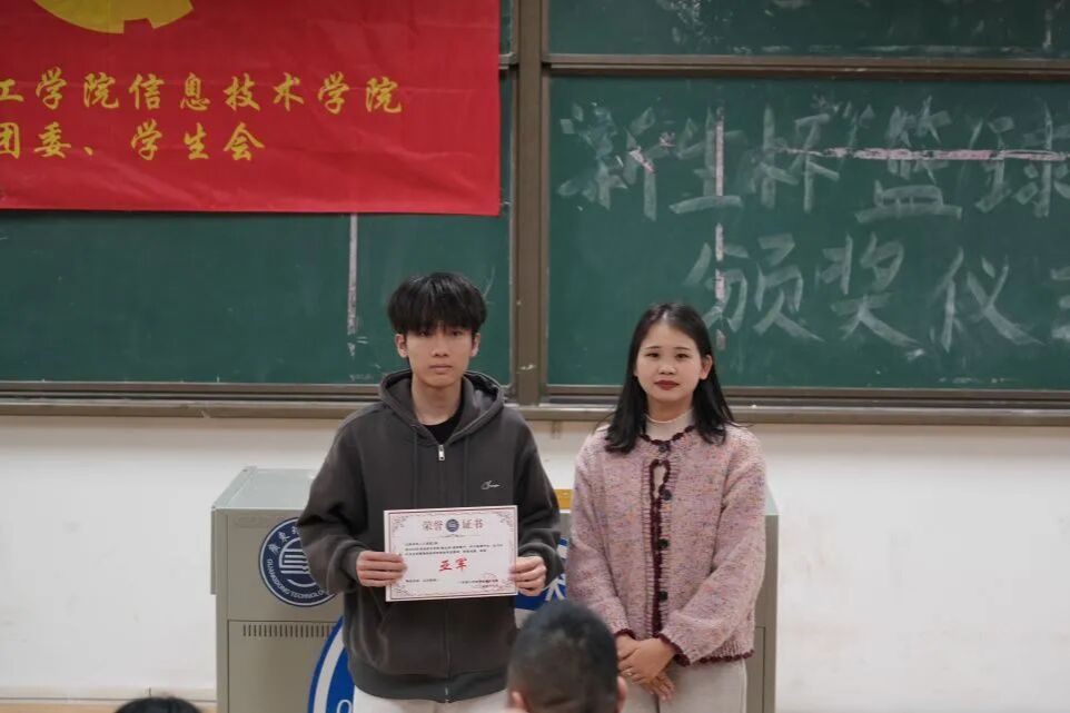 随后进入颁奖环节,季军、亚军及冠军班级代表依次上台,接过属于团队的荣誉。本次仪式还表彰了“新生杯”篮球赛最佳个人、优秀裁判员及优秀工作者,所有获奖人员登台领奖,这份荣誉既是对他们个人能力与辛勤付出的认可,更是对其责任担当与敬业精神的嘉奖。