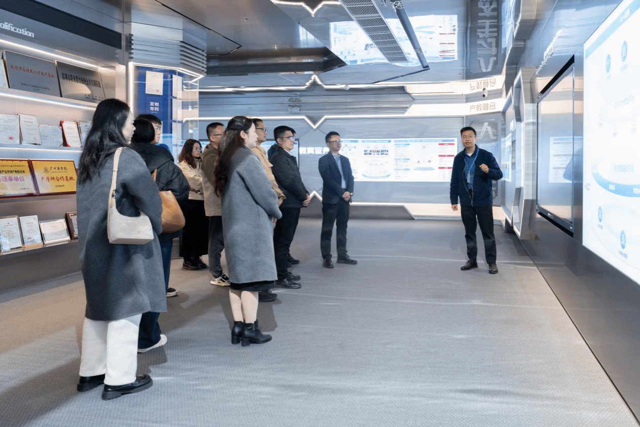 首先学院一行在邱总的带领下参观了公司的展厅,深入了解讯方技术的发展历程、业务布局、校企合作成果,并详细了解到讯方在工业软件应用案例、行业解决方案以及人才培养实践等方面取得的丰硕成果。