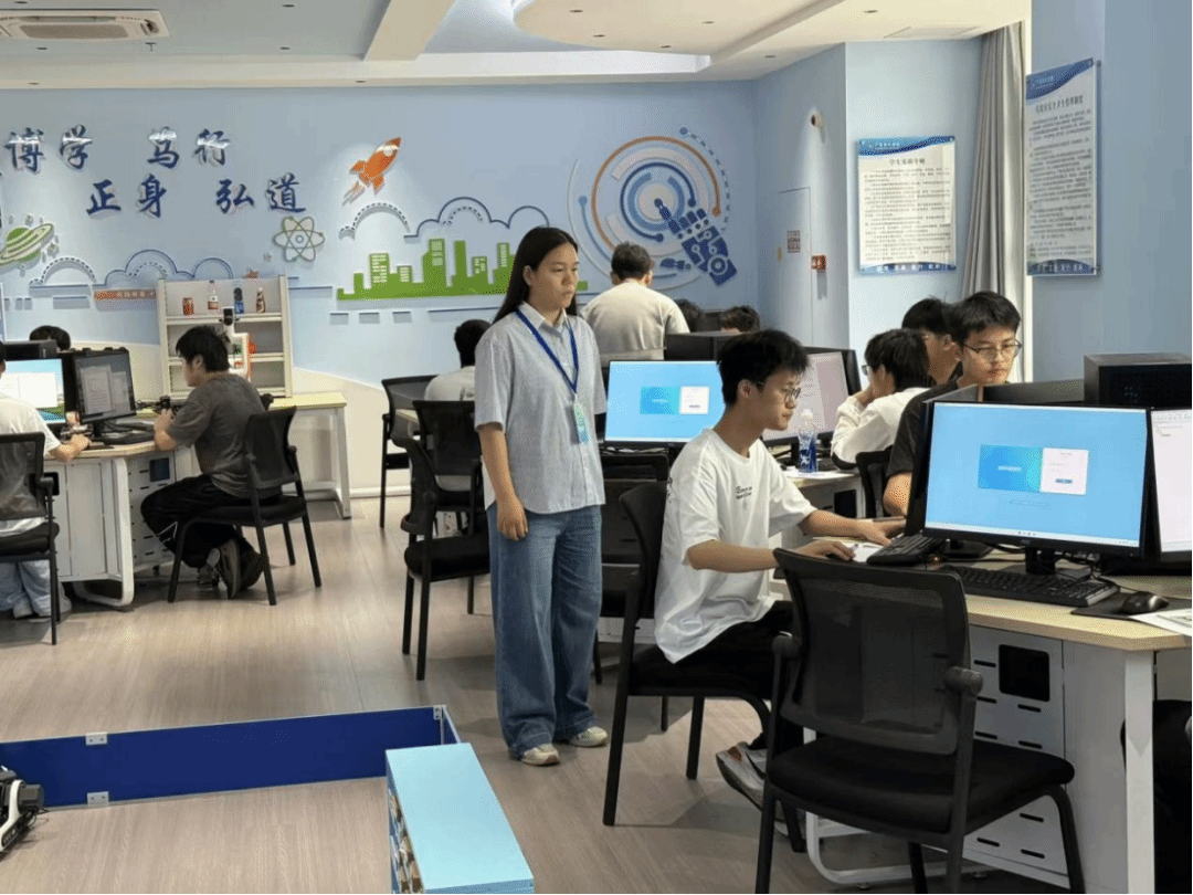 上午9时,各准时开赛。赛场内只闻键盘敲击声此起彼伏,选手们全神贯注,在代码世界中沉着应战。不少赛点还设置了候考区、休息区,志愿者们有序引导,保障赛事平稳运行。