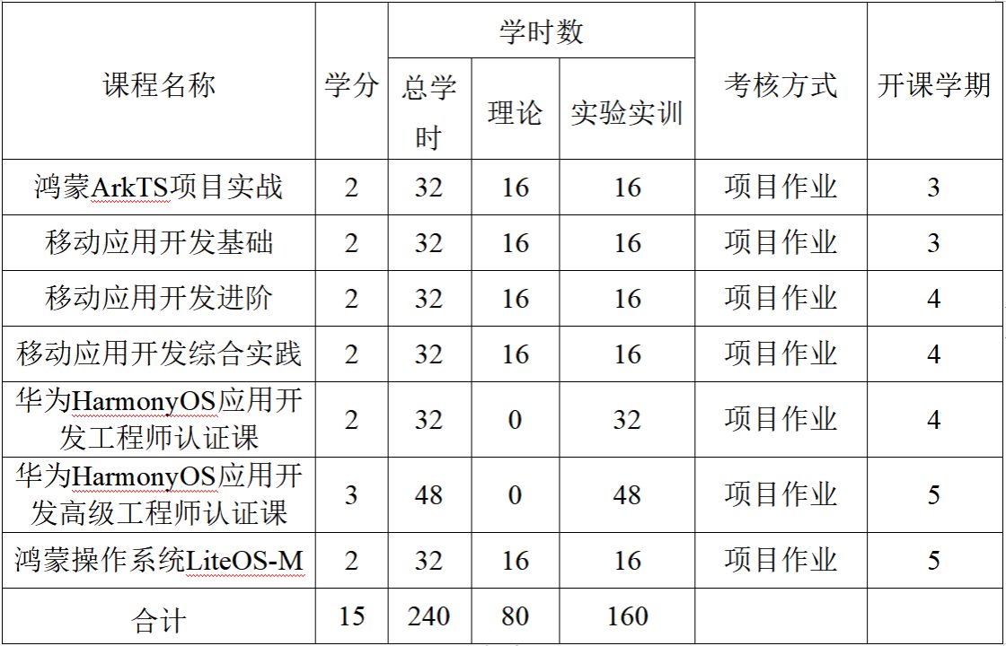鸿蒙全栈微专业学制为1.5年,单独编班组织教学。修满规定学分并完成实践项目的学生可获得学校颁发的微专业证书。