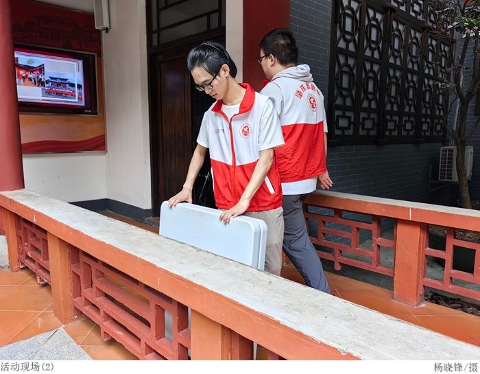 活动过程中,在工作人员指引下,入党积极分子仔细清扫着阅江楼的公共区域,维护着景区的环境整洁。同时,入党积极分子为游客进行指引和咨询服务,耐心解答游客的问题,热情的介绍阅江楼的历史文化。随后引导游客参观叶挺独立团团史专题展览,让游客深刻领会到革命先烈们英勇无畏和浴血奋战的精神。