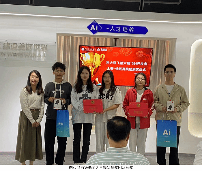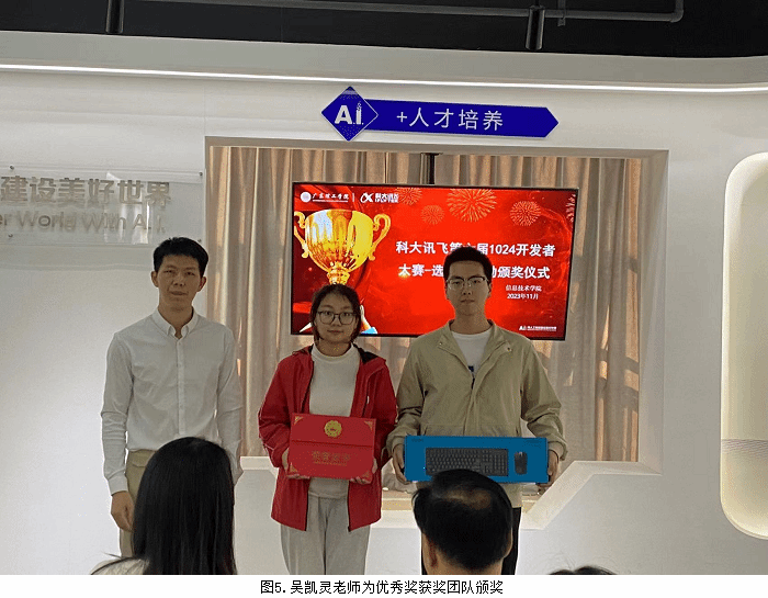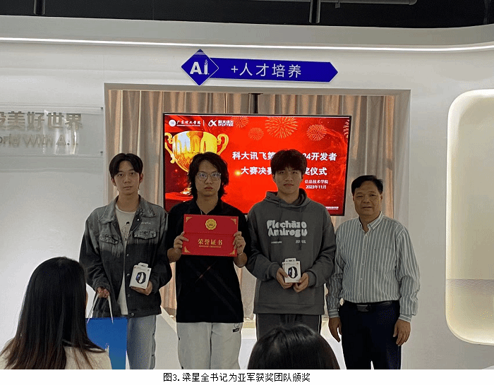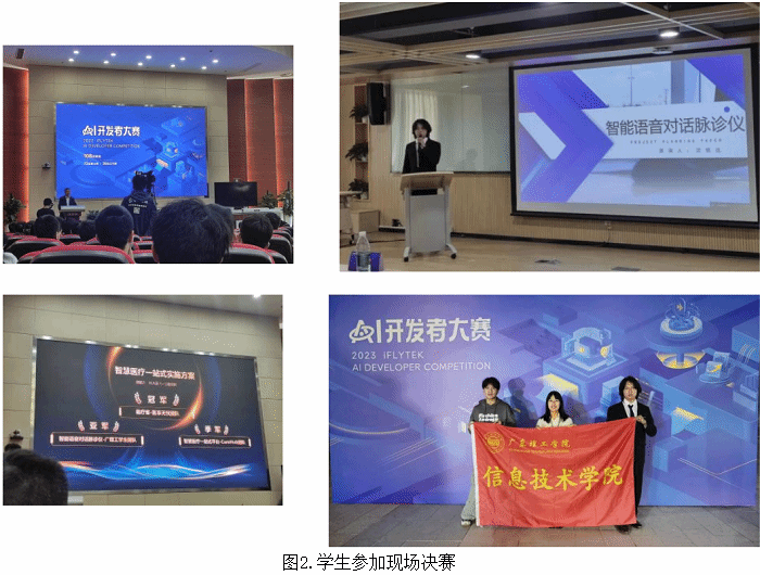其中22级本科软件工程(智能软件开发方向)专业的沈锐达、罗嘉宏和沈可超三位同学的《智能语音对话脉诊仪》项目在1024开发者大赛-应用赛-智慧医疗一站式实施方案赛题上,经作品方案评审和路演评审,荣获亚军。并受邀参观1024开发者节科博展、A.I.开发者大赛年度决赛路演,感知人工智能最新科技成果