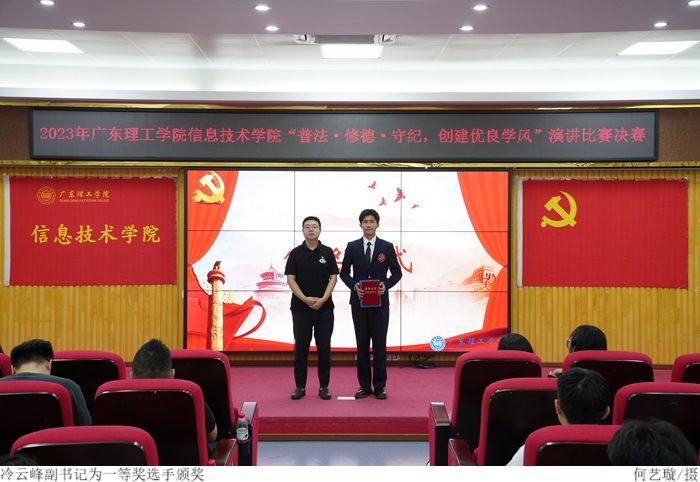 最后,冷云峰上台致辞,他对此次取得优异成绩的参赛选手表示祝贺,并表示希望同学们能够遵守校纪校规,培养个人品德修养,进一步推动我院优良学风建设。