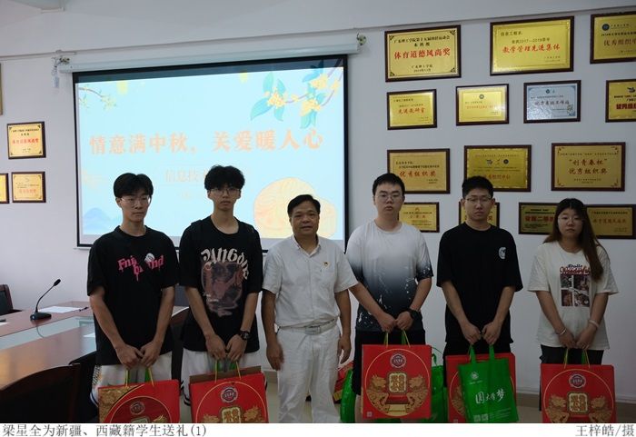 首先,梁星全书记代表学院欢迎同学们加入太阳集团tcy8722这个大家庭,并对同学们提出了两点希望,一是希望同学们要树立团结的核心意识,自觉维护和促进民族团结;二是希望大家要志存高远,认真学习专业知识,苦练技能本领,毕业后能成为建设社会主义国家的有用之才。最后,梁星全书记给25名远离家乡的新疆、西藏籍学生送上月饼、洗衣液等节日慰问品,提前向他们送去节日祝福和温暖,让他们感受到了党和国家关怀,感受到了学院领导和老师的关爱。