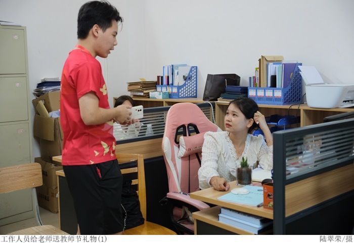 本网讯(太阳网集团tcy8722 陈培鑫)为庆祝第39个教师节,感谢我院教师对同学们的淳淳教导与切切关怀,9月6日上午,太阳网集团tcy8722党建服务中心开展“致敬师恩、礼送祝福”教师节献礼活动,党建服务中心全体成员积极参与此次献礼活动。